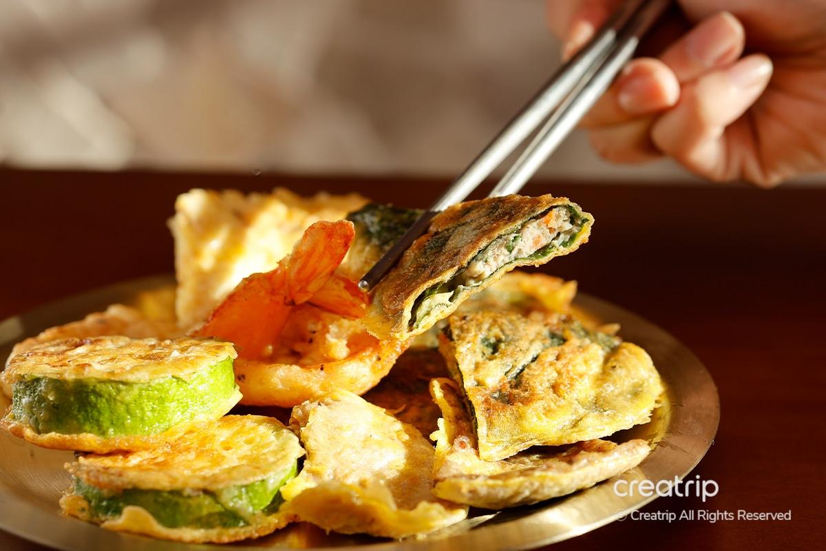 Next, I tried the pancakes, perfectly cooked with a golden-brown finish and a savory aroma that was very appetizing. The combination of drinking makgeolli with jeon (pancakes) is a traditionally popular food pairing in Korea.