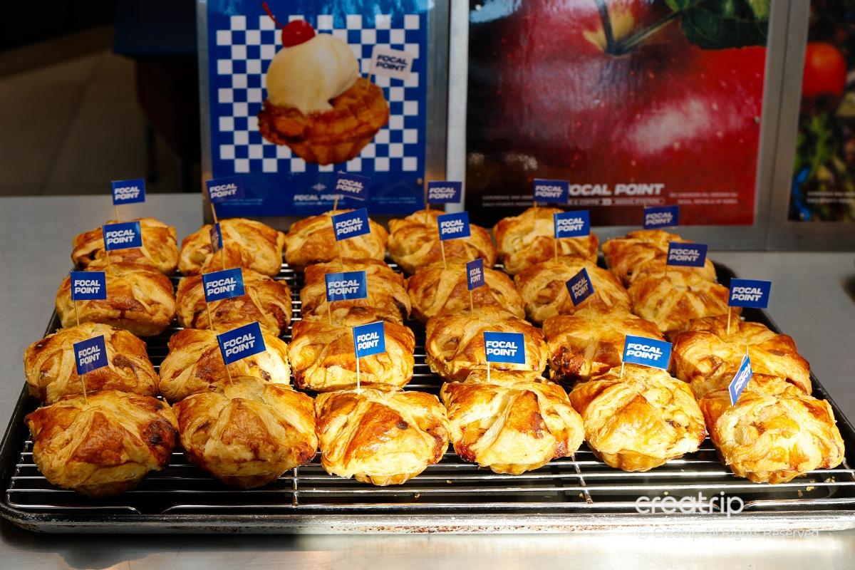 I couldn’t capture everything in the photo, but Focal Point offers a variety of pies and baked goods—croissants, sandwiches, cookies, and more, with over 40 options in total. They have a strict same-day production and sales policy, ensuring everything is fresh. With so many unique flavors, from classic to creative combinations, it was hard to pick just one!