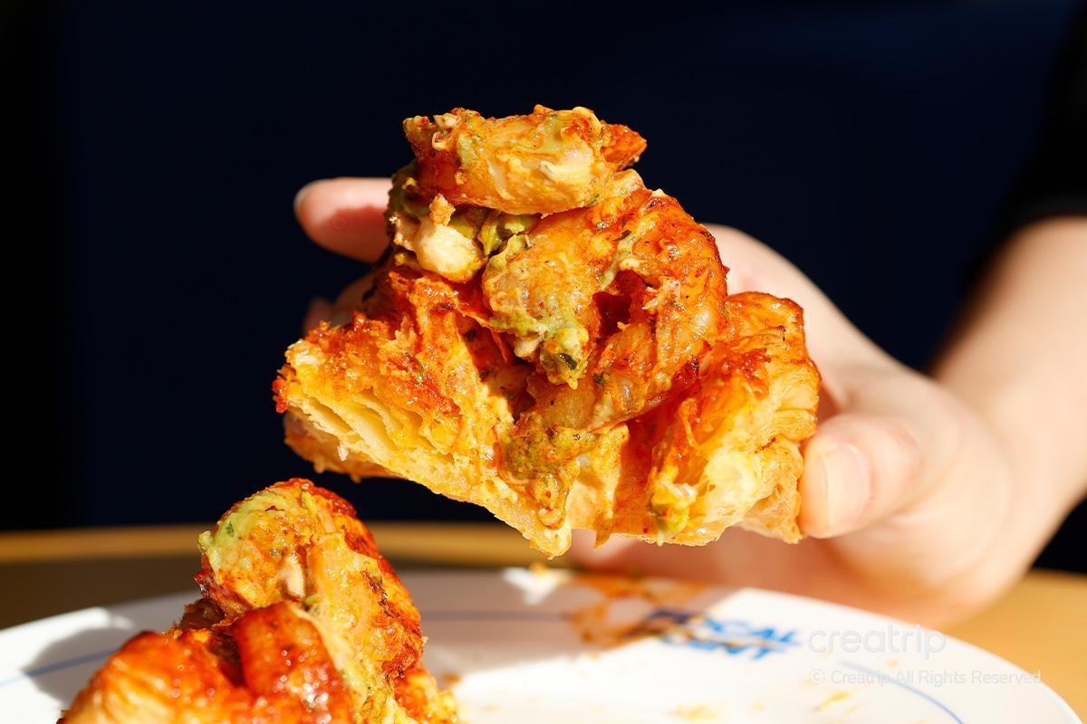 The Valencia shrimp avocado pie had a rich, spicy kick with cayenne-seasoned shrimp and creamy guacamole over a chipotle-filled base. The shrimp were plump and flavorful, and the crispy croissant crust made it even better.