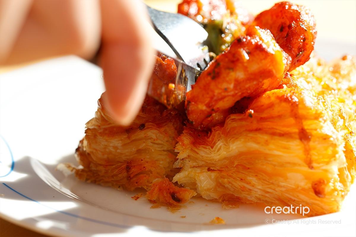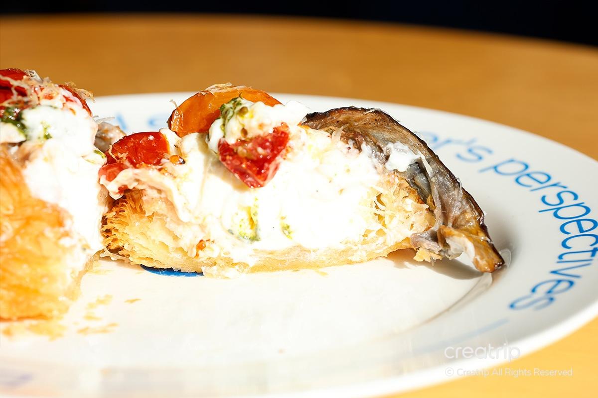The Napoli tomato eggplant pie was a combination of sweet and tangy Modena balsamic sauce and the savory basil pesto on top of the creamy cheese filling. The roasted eggplant and tomatoes on top were also delicious, and the crispy texture of the croissant complemented it perfectly.