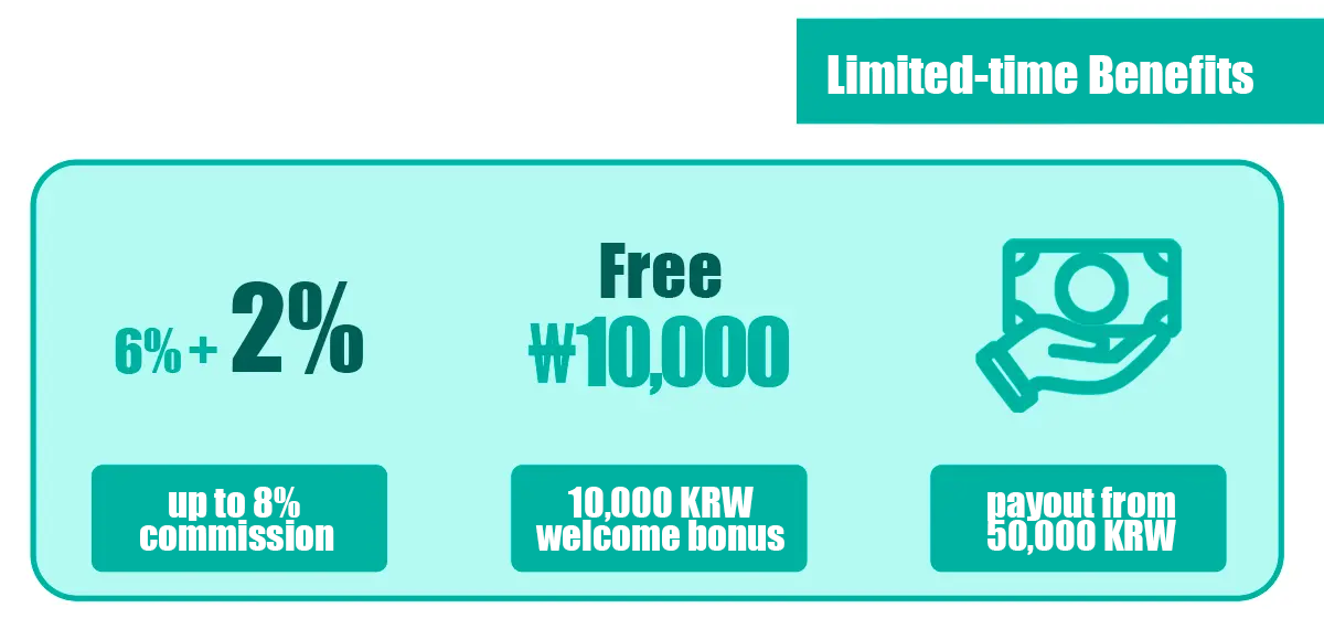 - Receive a 10,000 KRW (10000) bonus just for signing up! (*only for those who join by June 30, 2025)