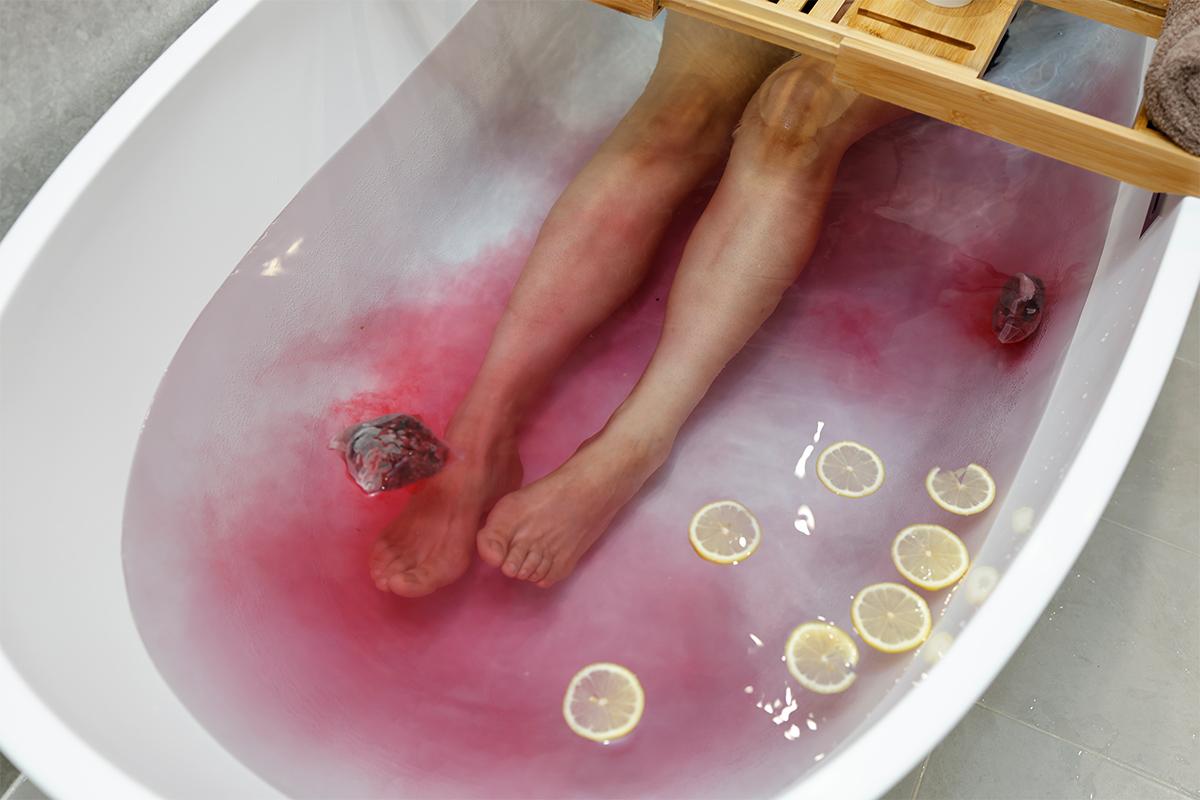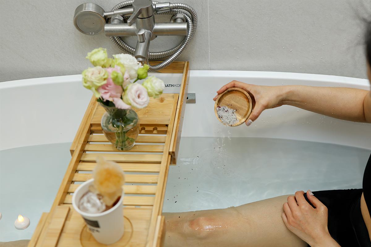 You can choose from 8 ingredients to add to the spa bath, including natural salt, hibiscus & lemon, mugwort, and bath bombs,