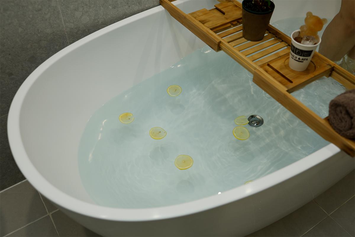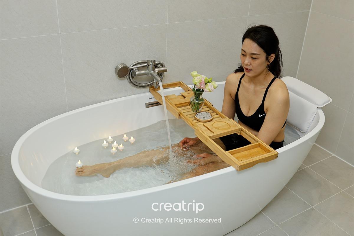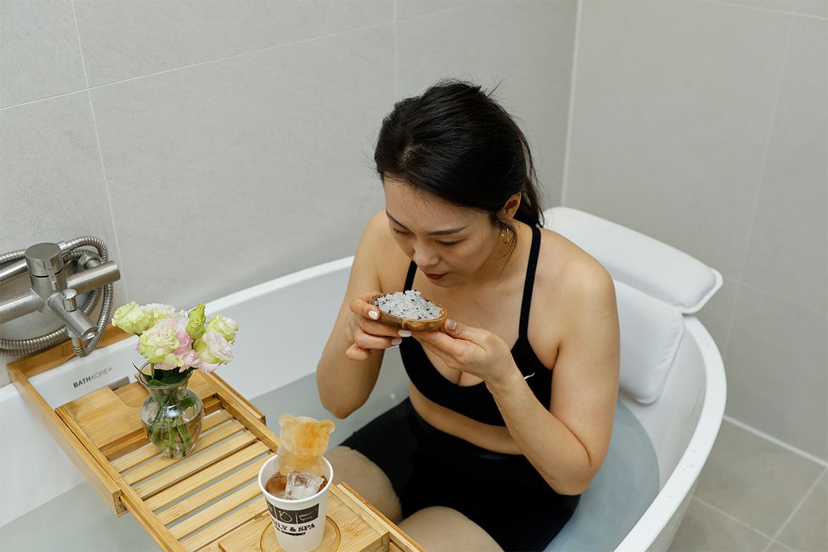 Despite the model's height exceeding 170cm, the bathtub was spacious enough for her to enjoy a relaxing bath with her legs stretched out comfortably.