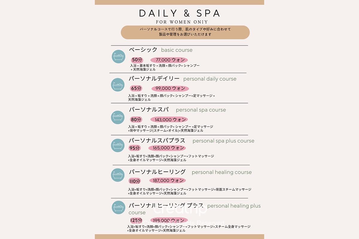 'Daily and Spa' is exclusively for women, and because privacy is guaranteed, you can use it with peace of mind and comfort.