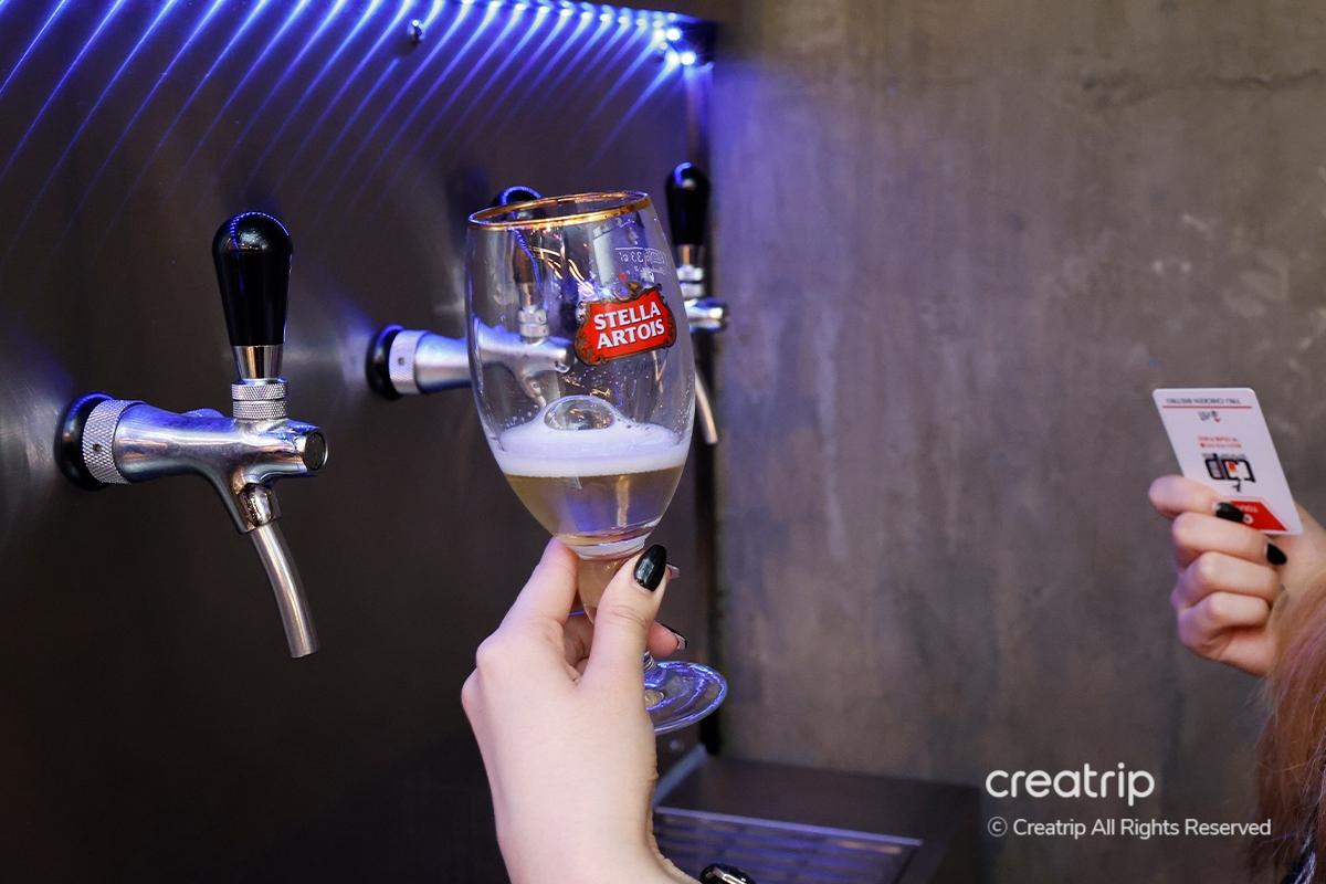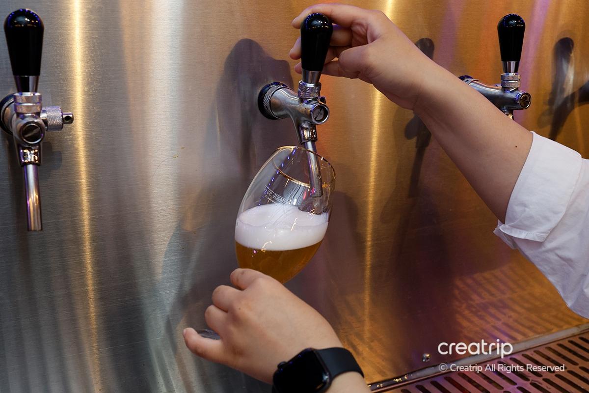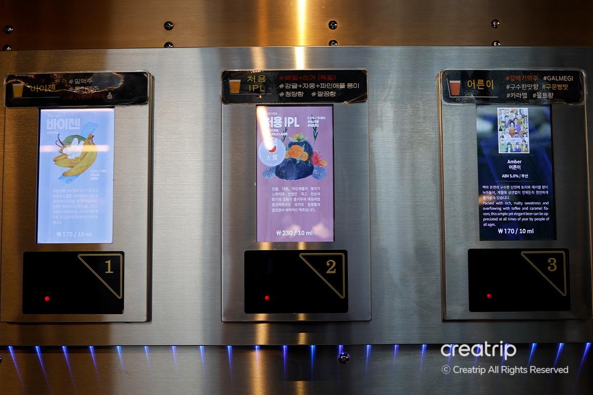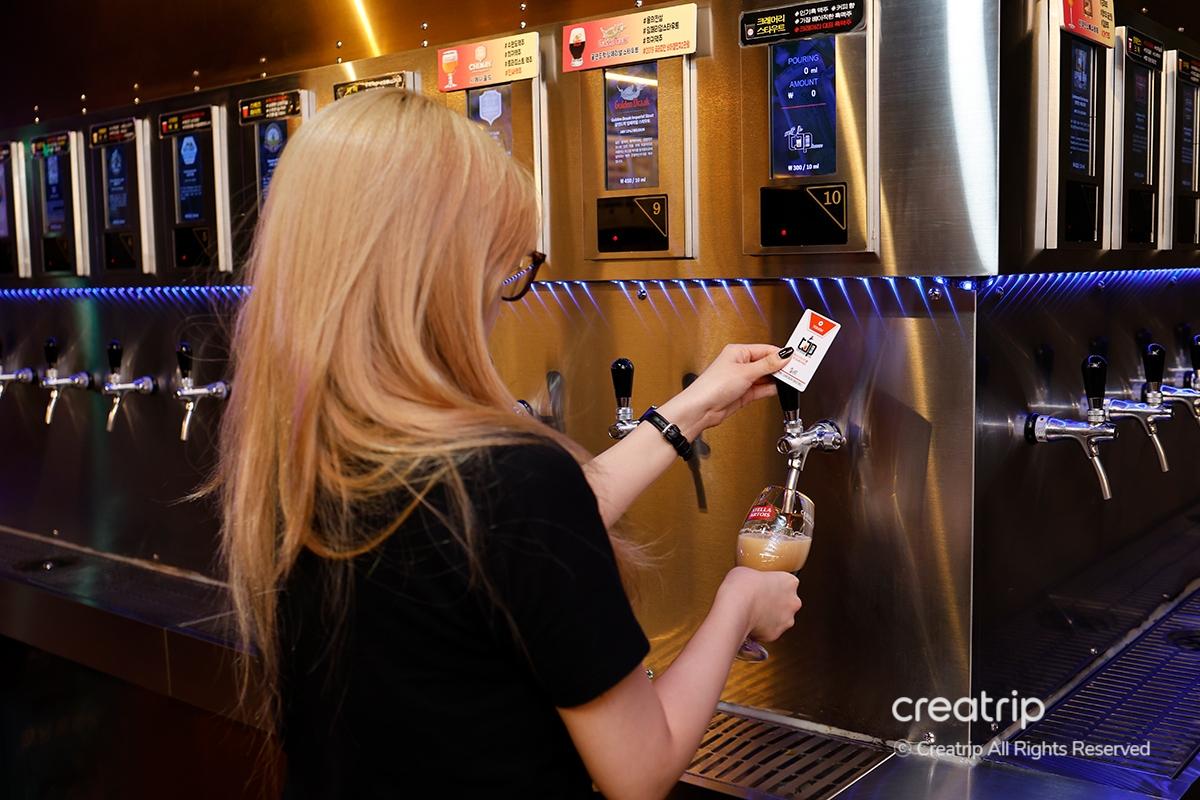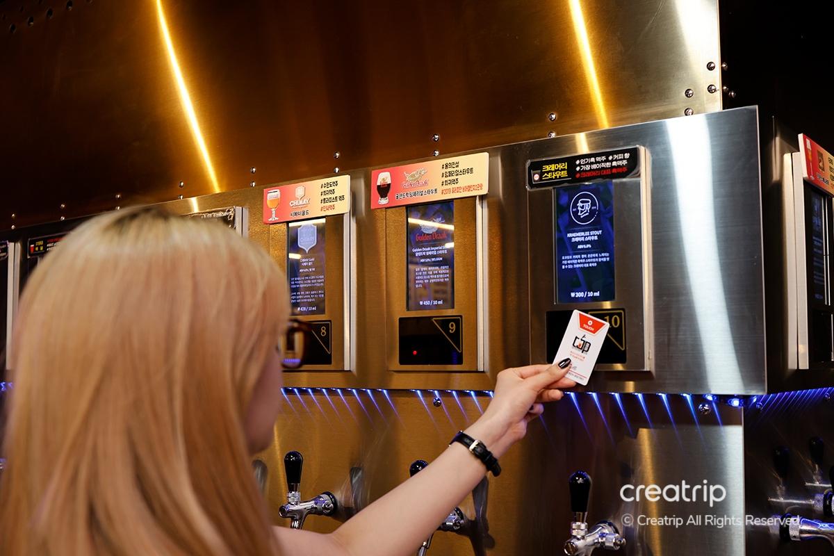 After that, refer to the beer descriptions written on the dispenser, choose the beer you want, tag the card given by the owner on the machine, and pour as much beer as you want to drink!
