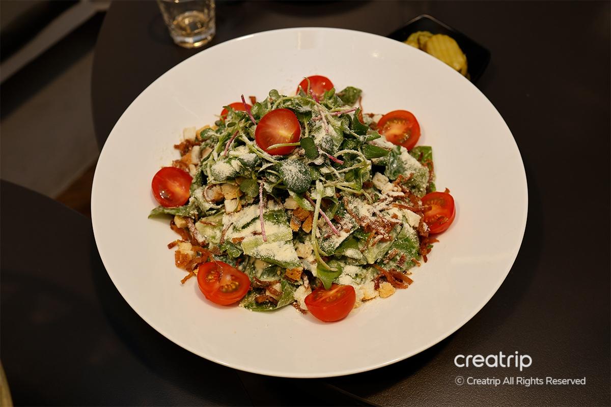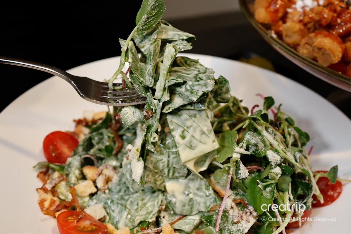 First, the Caesar salad is made with a homemade dressing, giving it a deep and rich flavor that's outstanding.