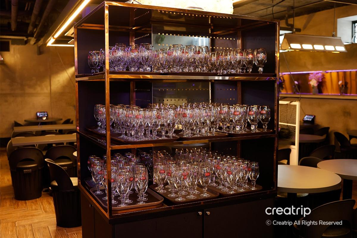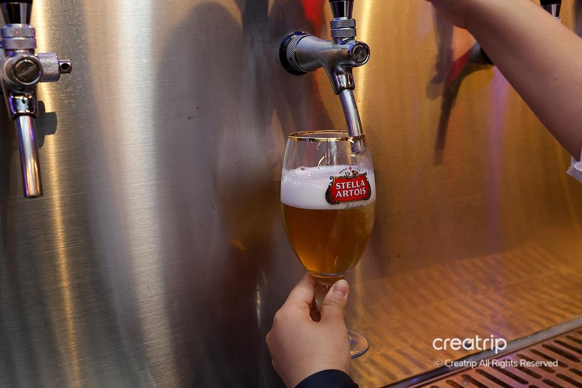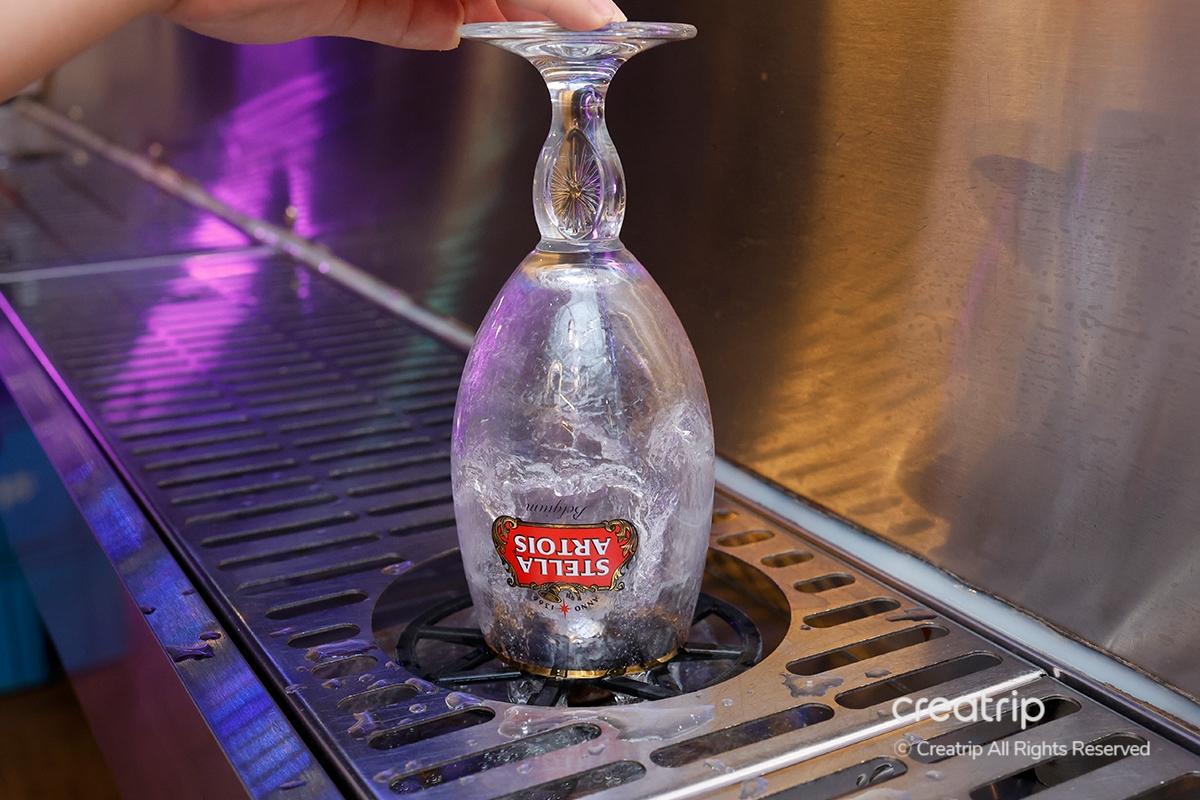 To briefly introduce how to enjoy beer, first take a beer glass from one side of the store and rinse it with water once.