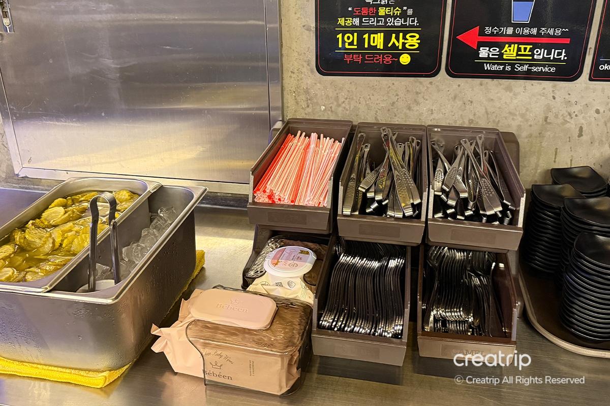 You could freely take wet wipes, tissues, forks, straws, and even pickles. Especially, there was ice next to the pickle container, so you could enjoy cold pickles!