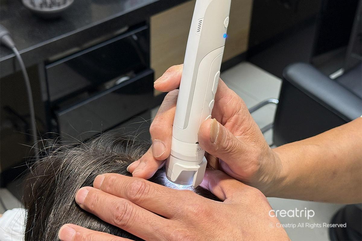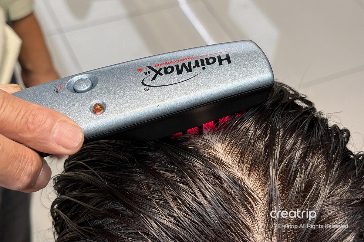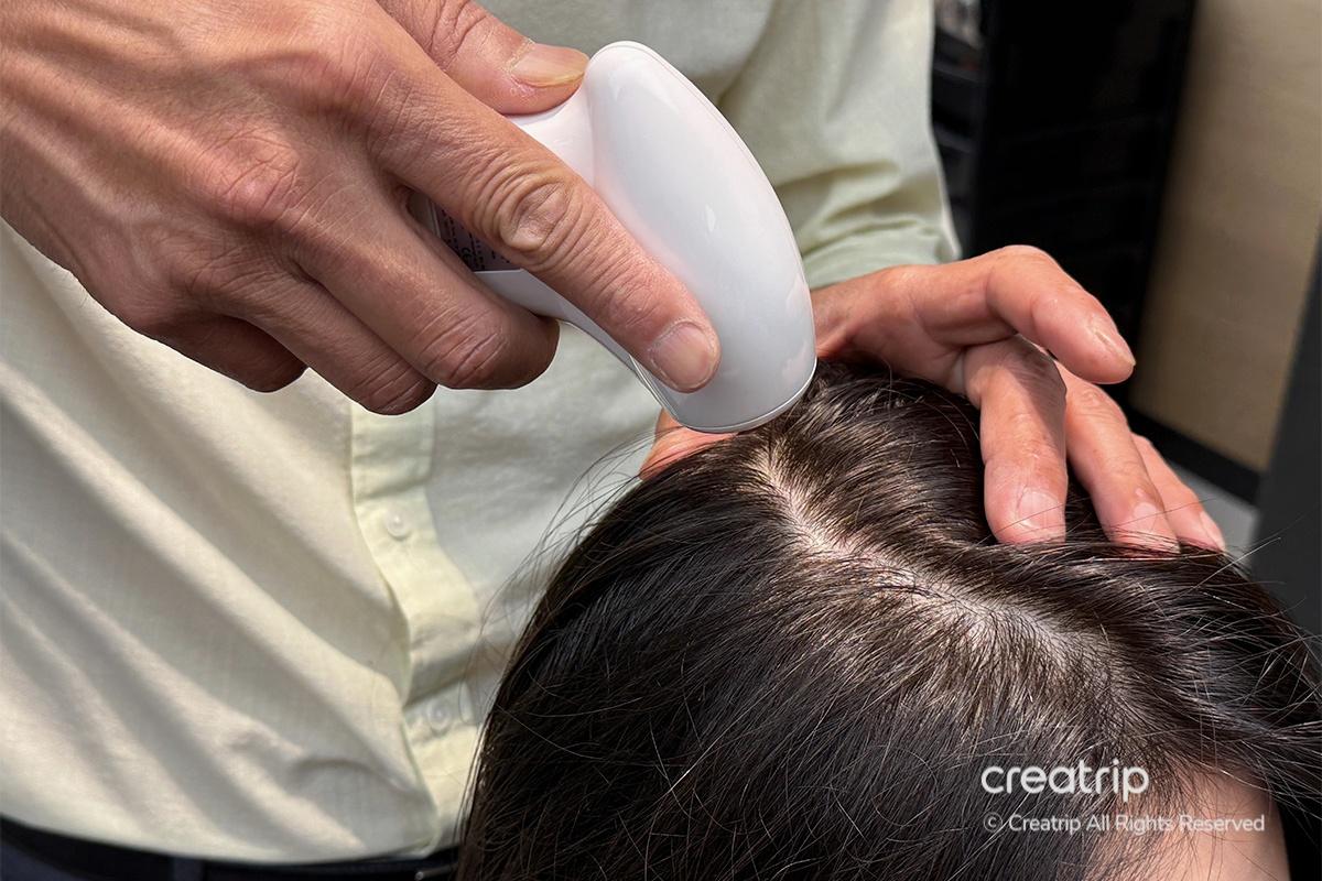 Back at my seat, they used a laser device to treat my scalp and help expand the capillaries. It was my first time experiencing such detailed care, and it was fascinating. Knowing that the device is considered a medical-grade tool in the U.S. made me appreciate their expertise even more.