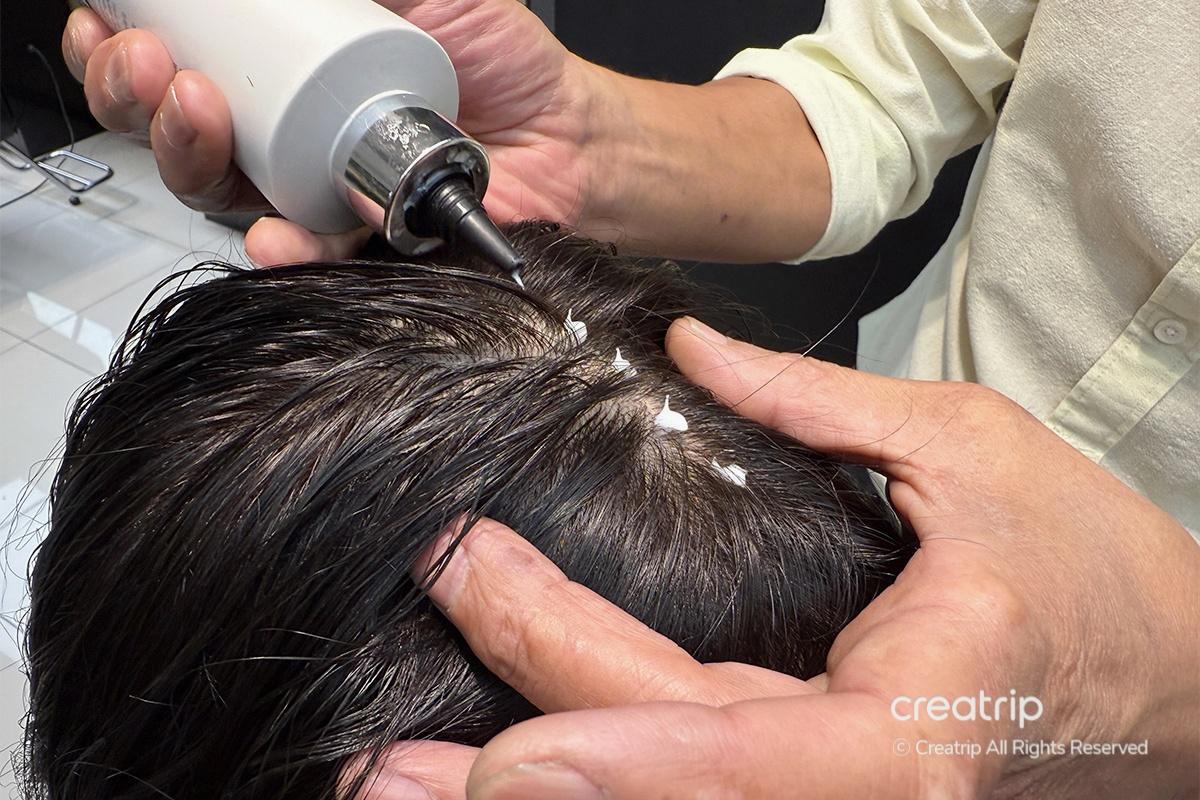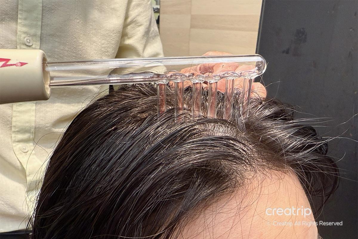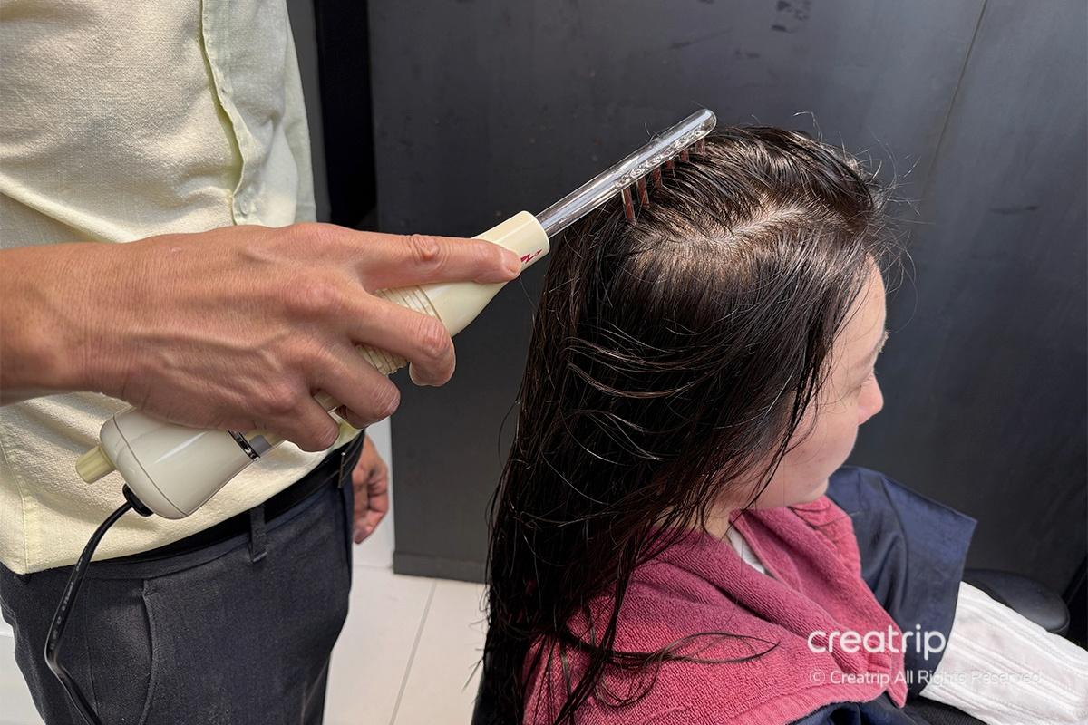 While the medicated product was being applied, they used an electric massage device instead of hands to avoid bacterial contact from fingernails. The device gently stimulated every part of my scalp, leaving me feeling refreshed and completely relaxed as my tension melted away.