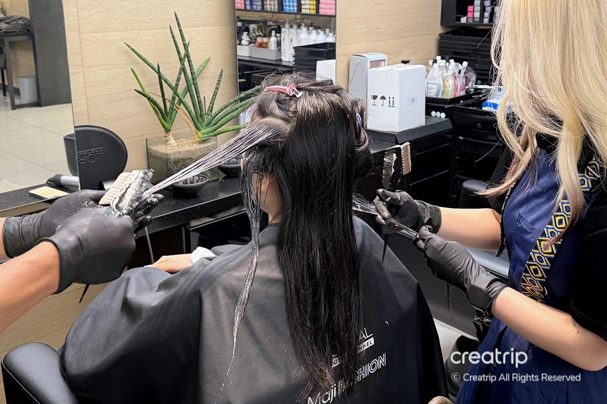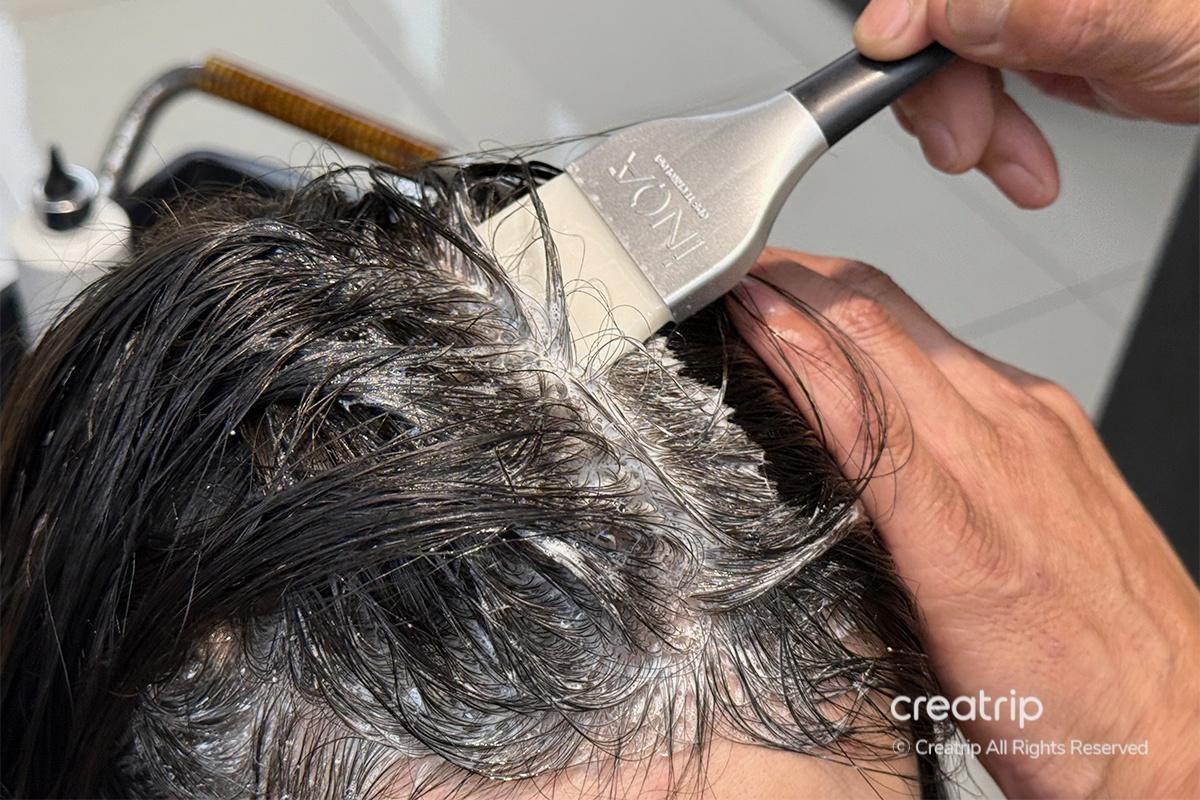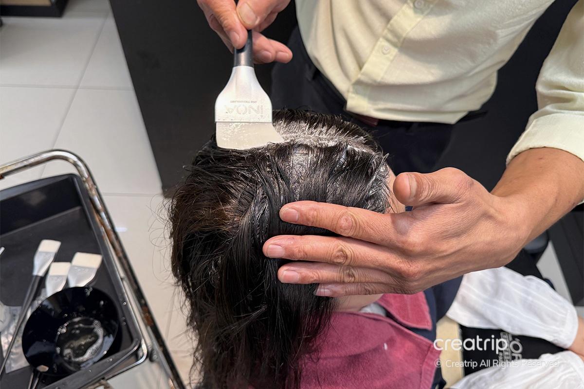 Next, they moved on to the hair coloring treatment. Since my hair had a reddish tone, they recommended a shade that would naturally tone it down and brighten my face. It was a brown with a hint of ash green, which gradually turns into a coffee or chocolate color over time—exactly what I wanted. Even if you’re unsure which color suits you, the stylists will help you pick the perfect shade, so there’s no need to worry!