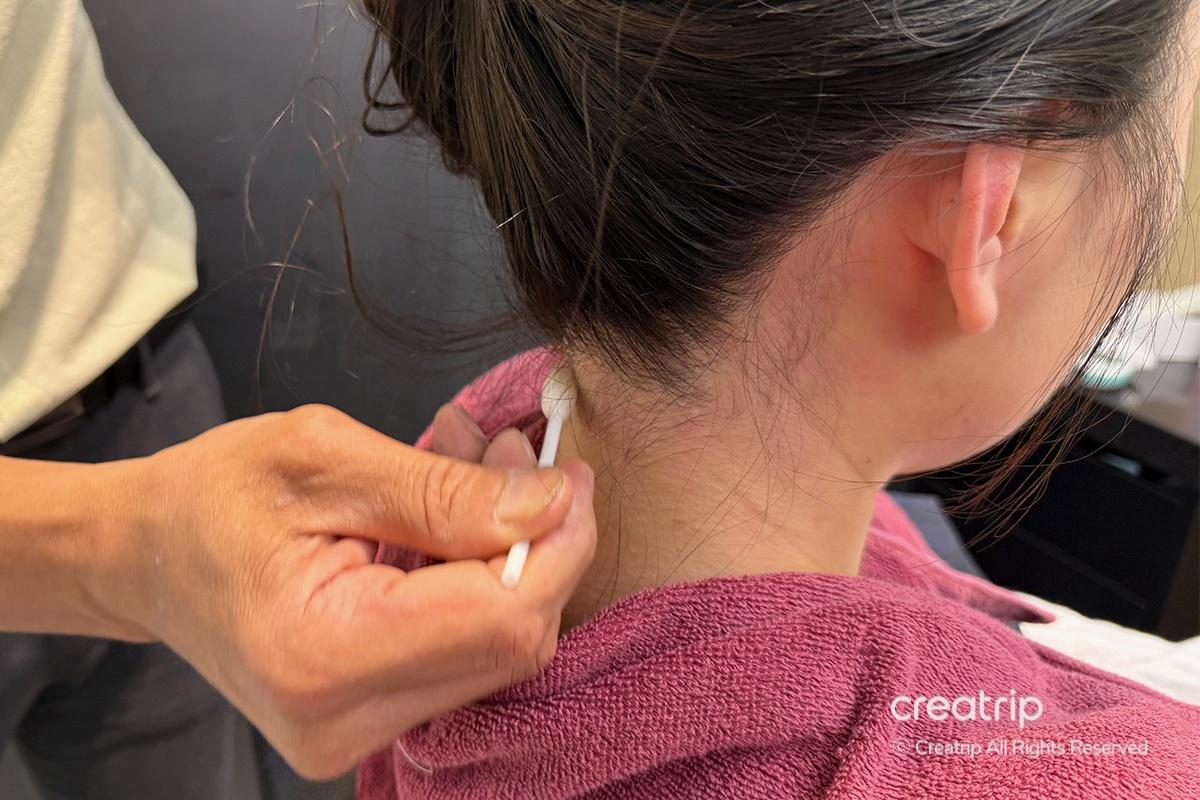 I chose the lavender scent, and the aroma oil was carefully applied along my hairline and the back of my neck using a cotton swab. The gentle fragrance instantly helped me relax, giving me the same comforting feeling as being at a professional massage spa.