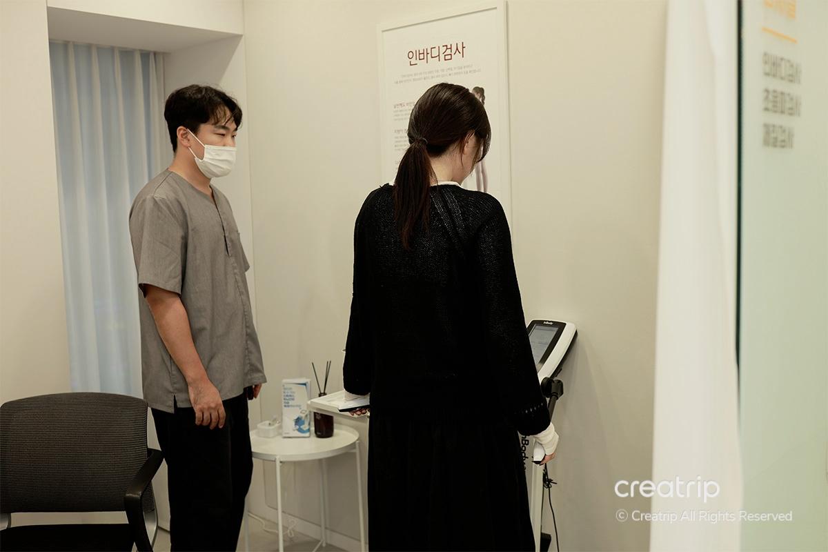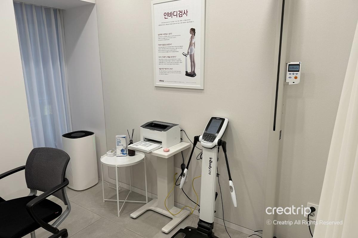 Our editor was scheduled to receive diet treatment today as well, so we moved to an examination room where an InBody test and a stress index test could be performed.