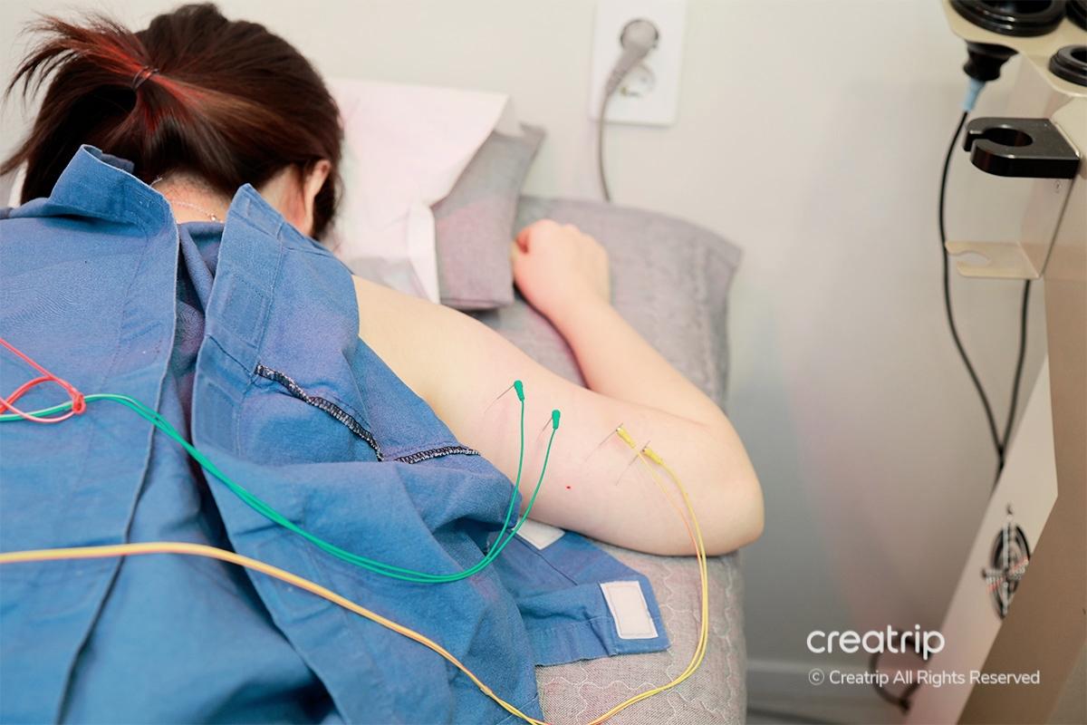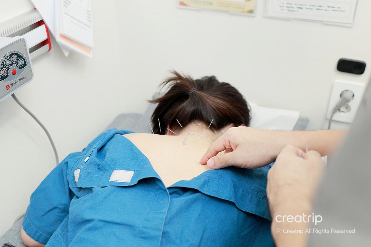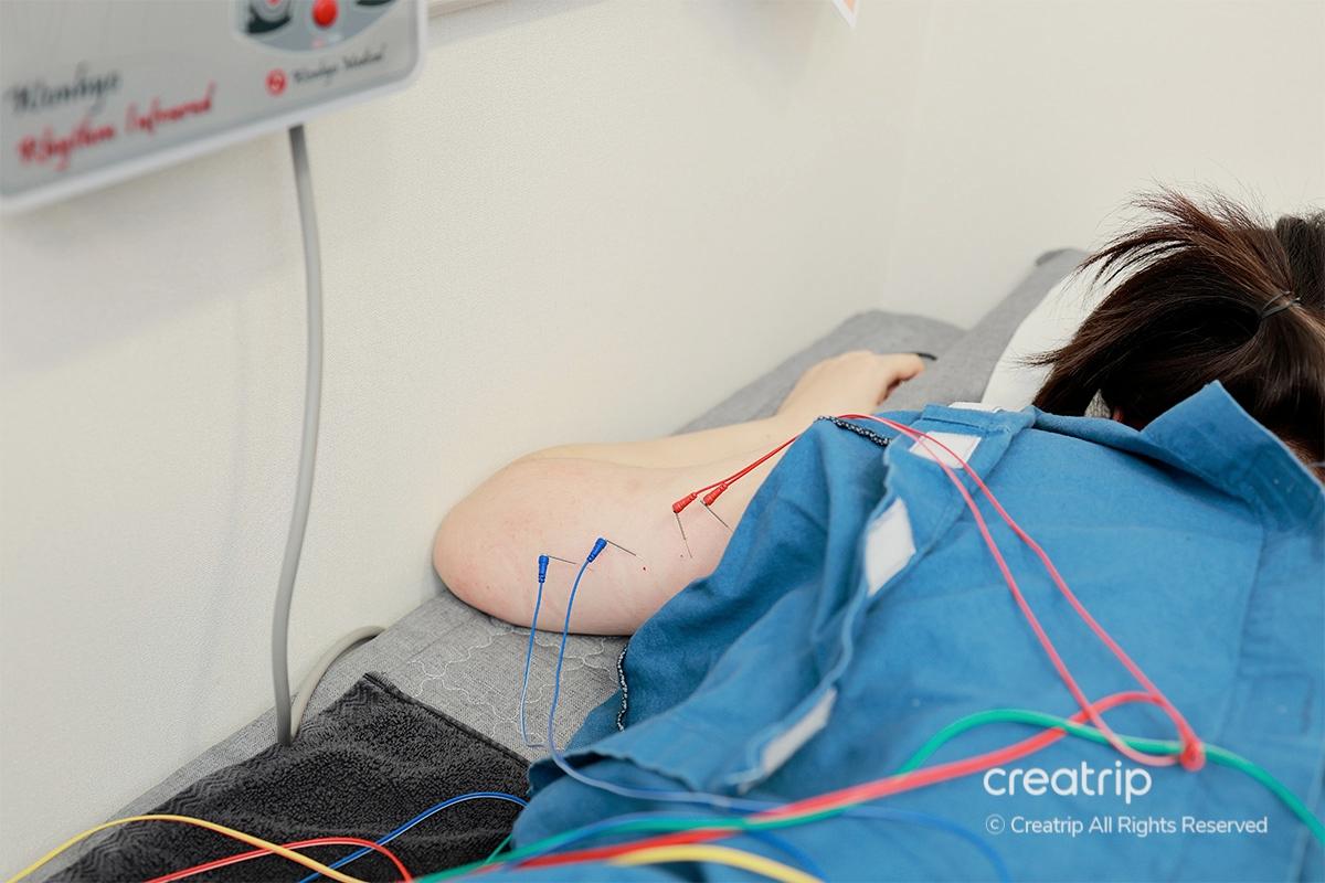 Acupuncture not only reduces pain but is also said to help blood circulation and stabilize the nerves.