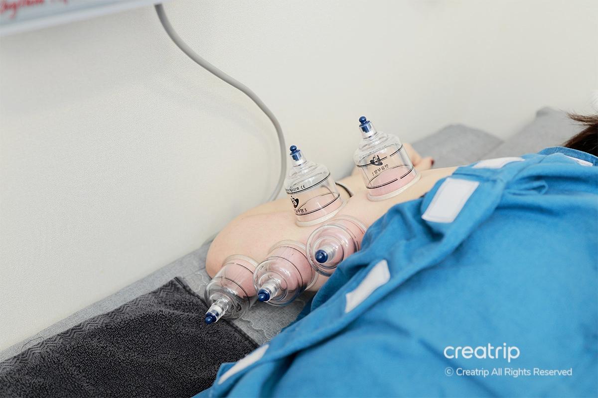 Cupping is a traditional treatment that attaches a cup-shaped device to the skin to create a vacuum, drawing up blood to promote circulation and relax muscles.
