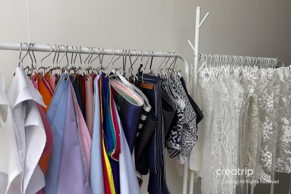 Inside, you’ll find personal color panels and a variety of colored fabrics on display, making it feel like you’ve stepped into a color laboratory.