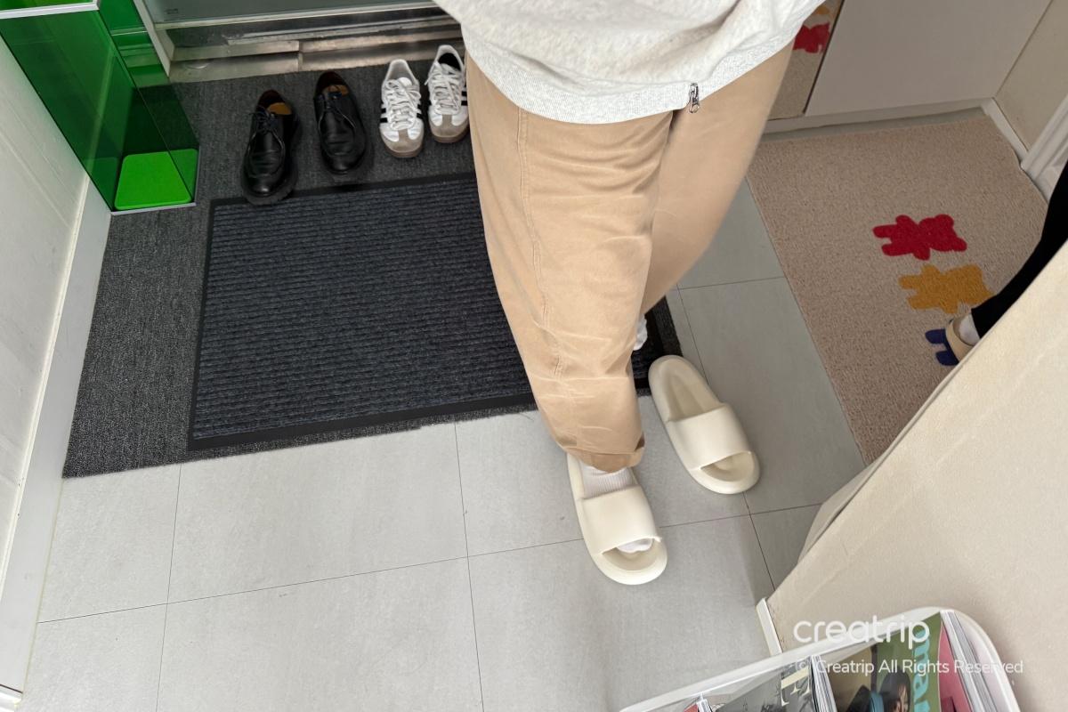 Just take off your shoes at the entrance and change into the slippers before going inside.