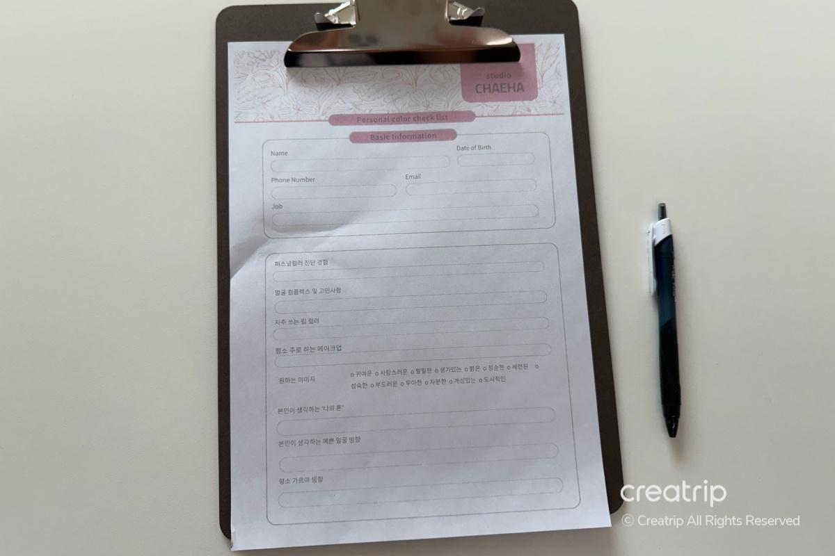 First, before the personal color analysis, I had a preliminary consultation and filled out an interview sheet.