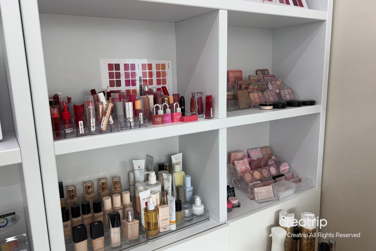 On one wall, various cosmetics are neatly arranged, so from the moment you walk in, you’ll be excited for your analysis!