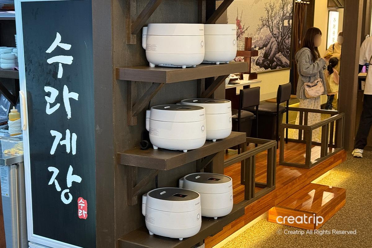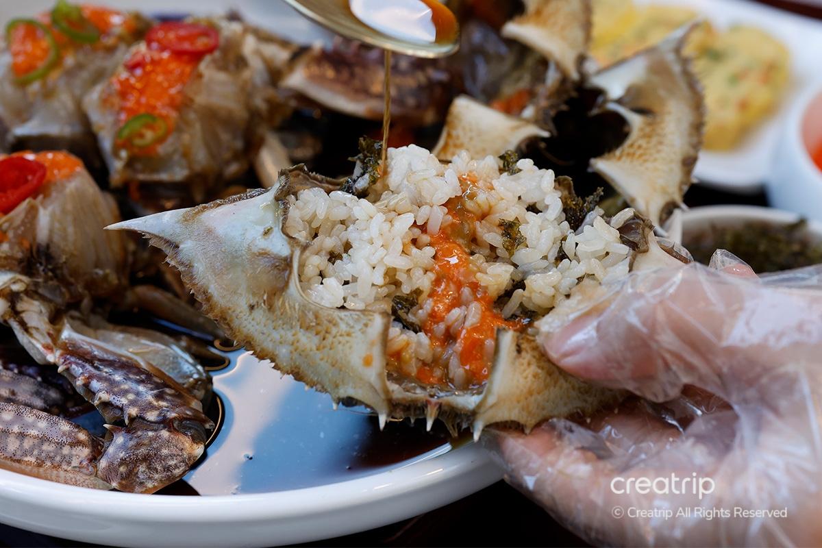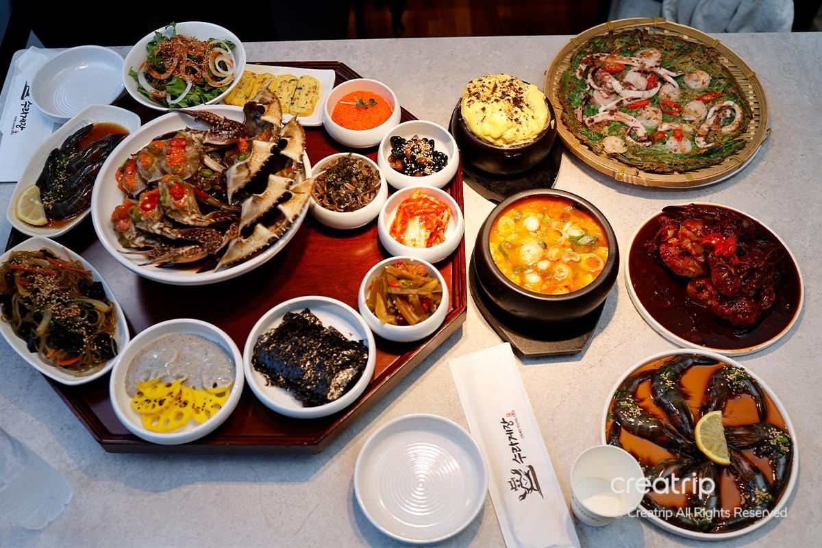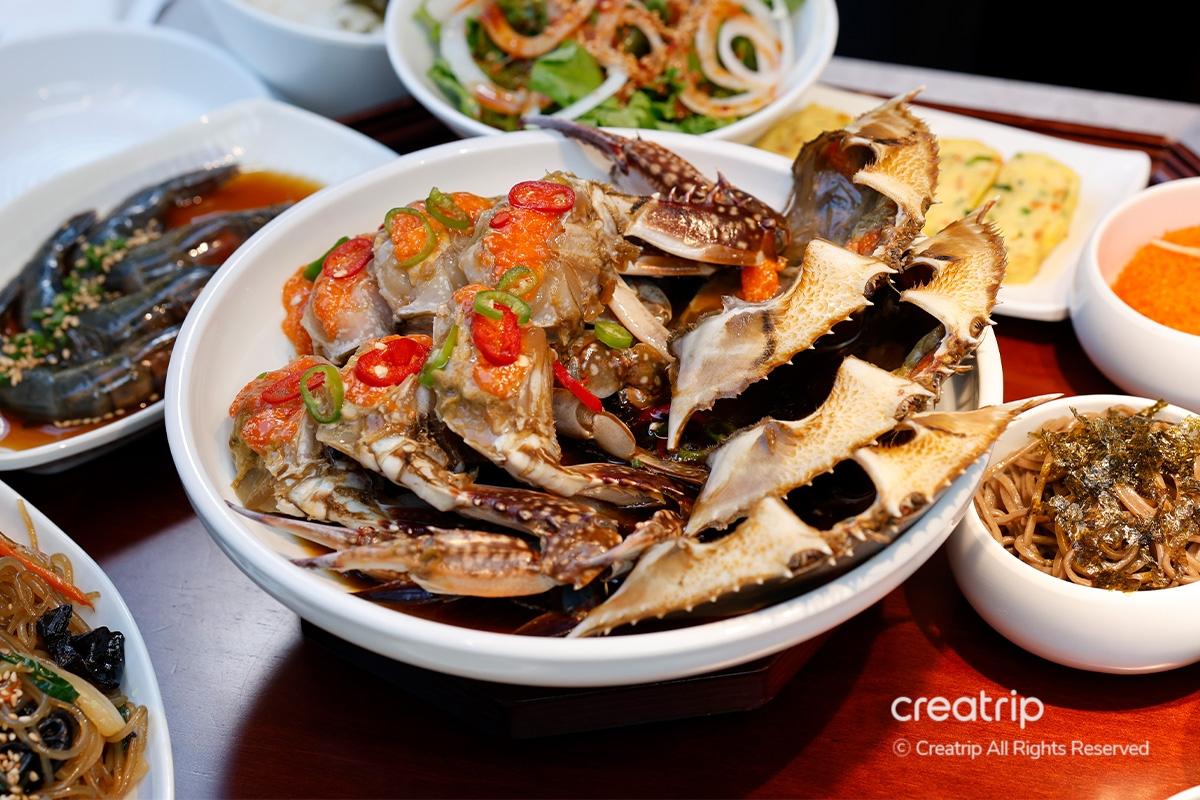 - The signature Suragejang dish, available only here, features fresh marinated crab served with nine assorted side dishes, creating a refined meal that makes you feel like royalty.