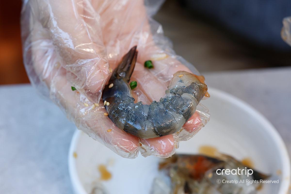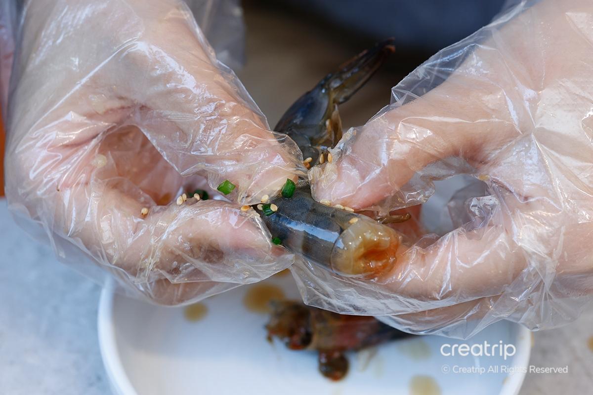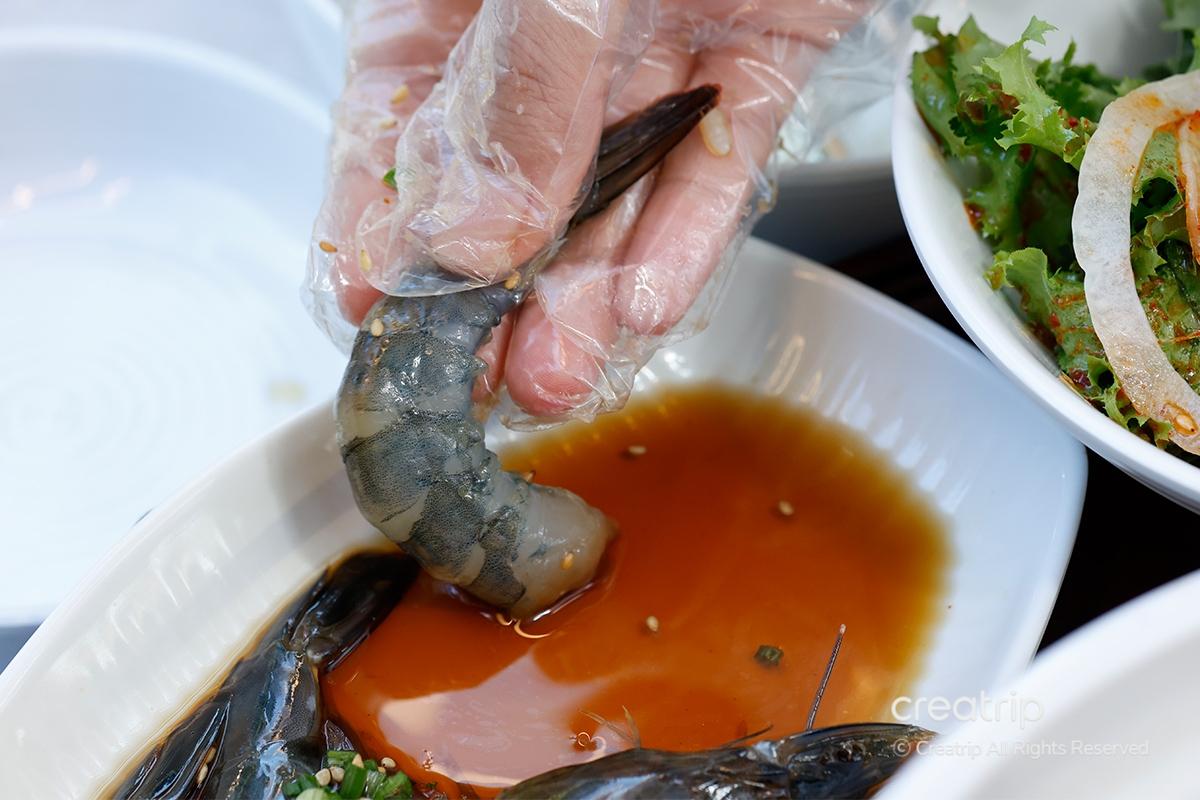 Just looking at the glossy soy sauce marinated shrimp neatly arranged on the plate was enough to make my mouth water.