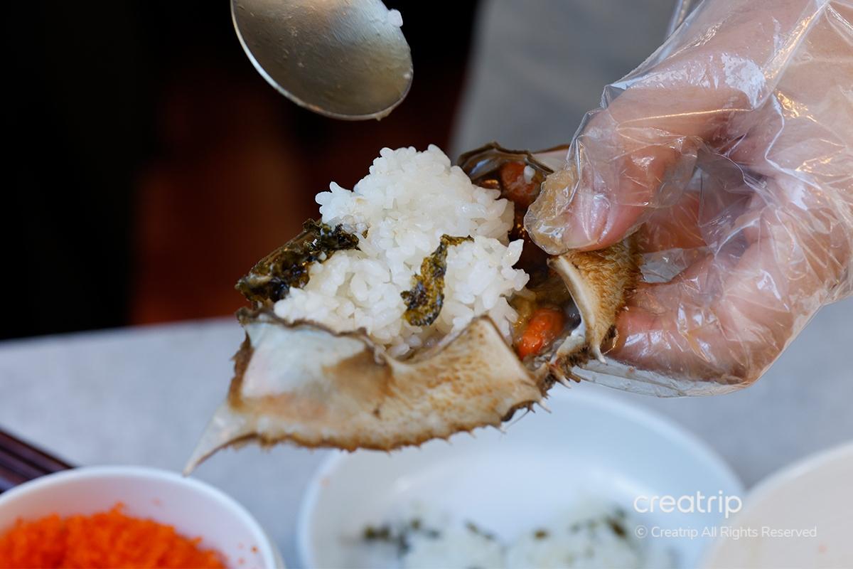 There was a pressure rice cooker placed in the center of the restaurant, and thanks to the freshly cooked, warm rice, the flavor of the marinated crab was even better!