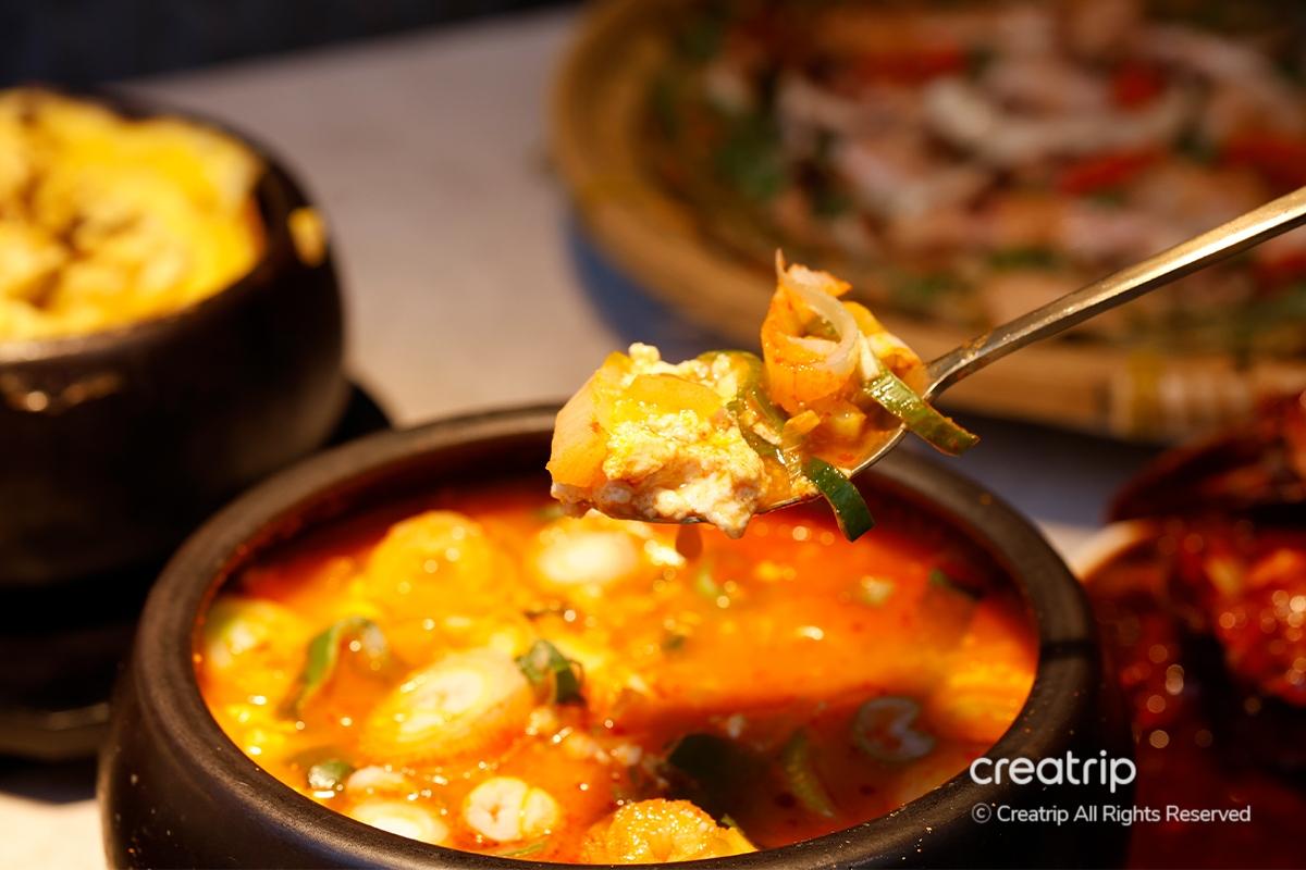 Not only the marinated crab, but also the soy sauce shrimp, Buldak Gejang, seafood pancake, soft tofu stew, and truffle steamed egg—everything was delicious!