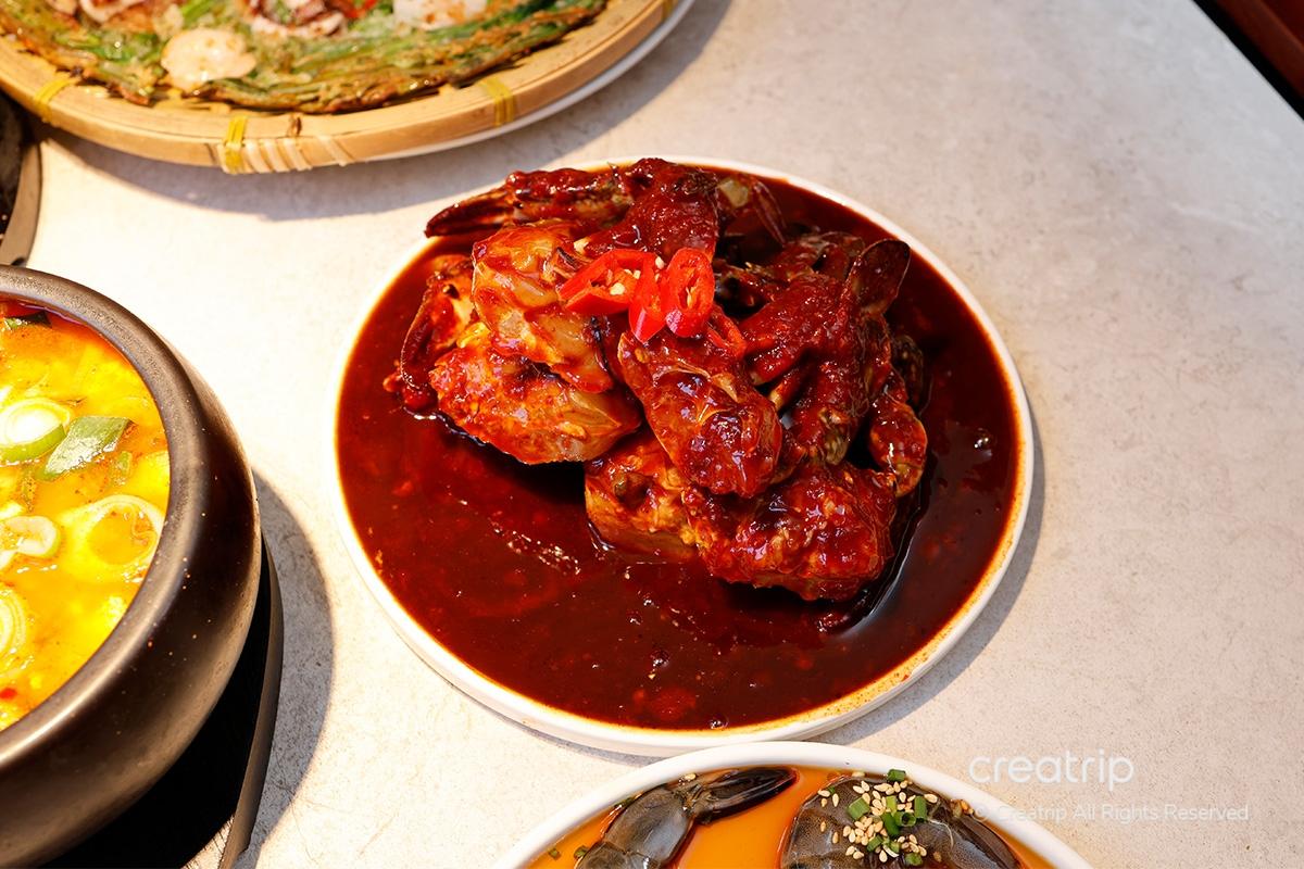 - You can sample a variety of iconic Korean dishes all in one place. Enjoy a range of menu items including soy sauce marinated shrimp, spicy fire crab, seafood pancake, and truffle steamed eggs!