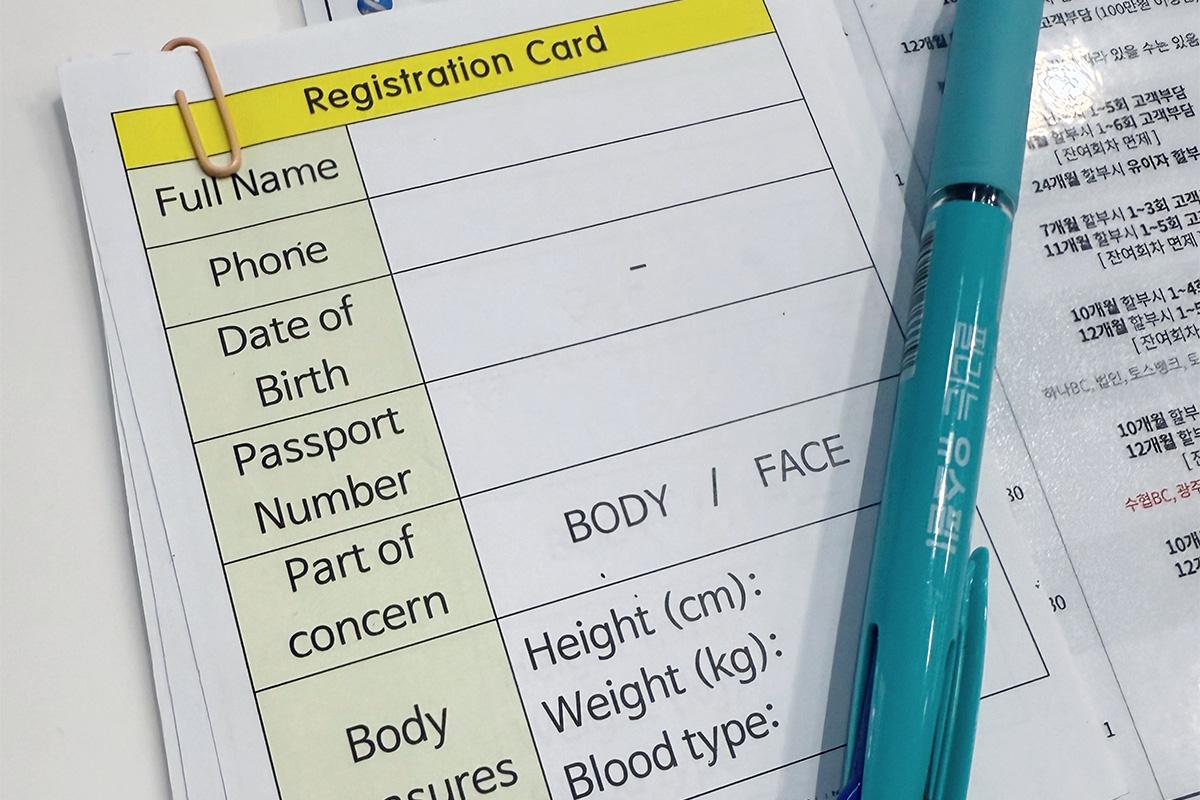 Once your reservation is confirmed, you'll be asked to fill out a registration card for your consultation.