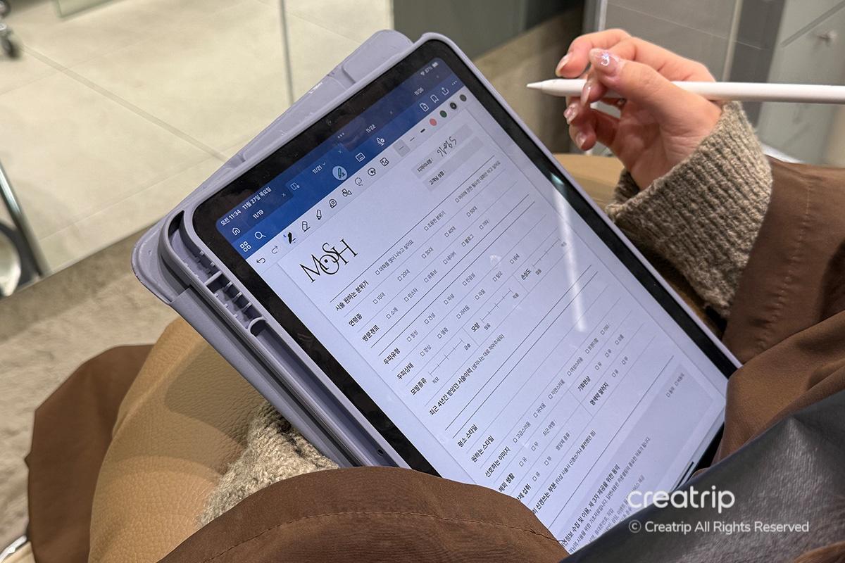 First, before the procedure, you will be asked to fill out some basic information using a tablet.