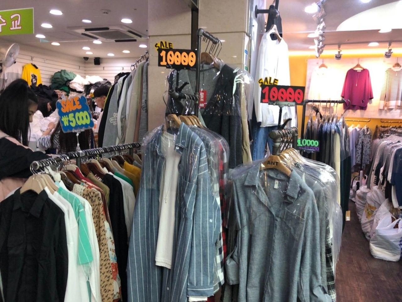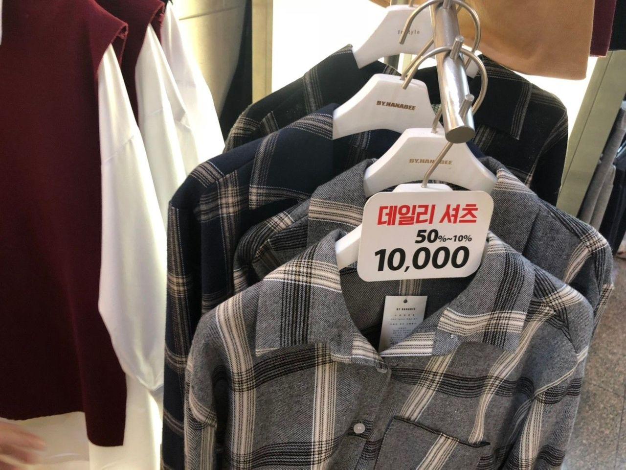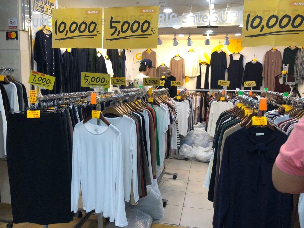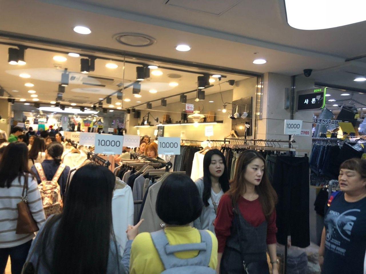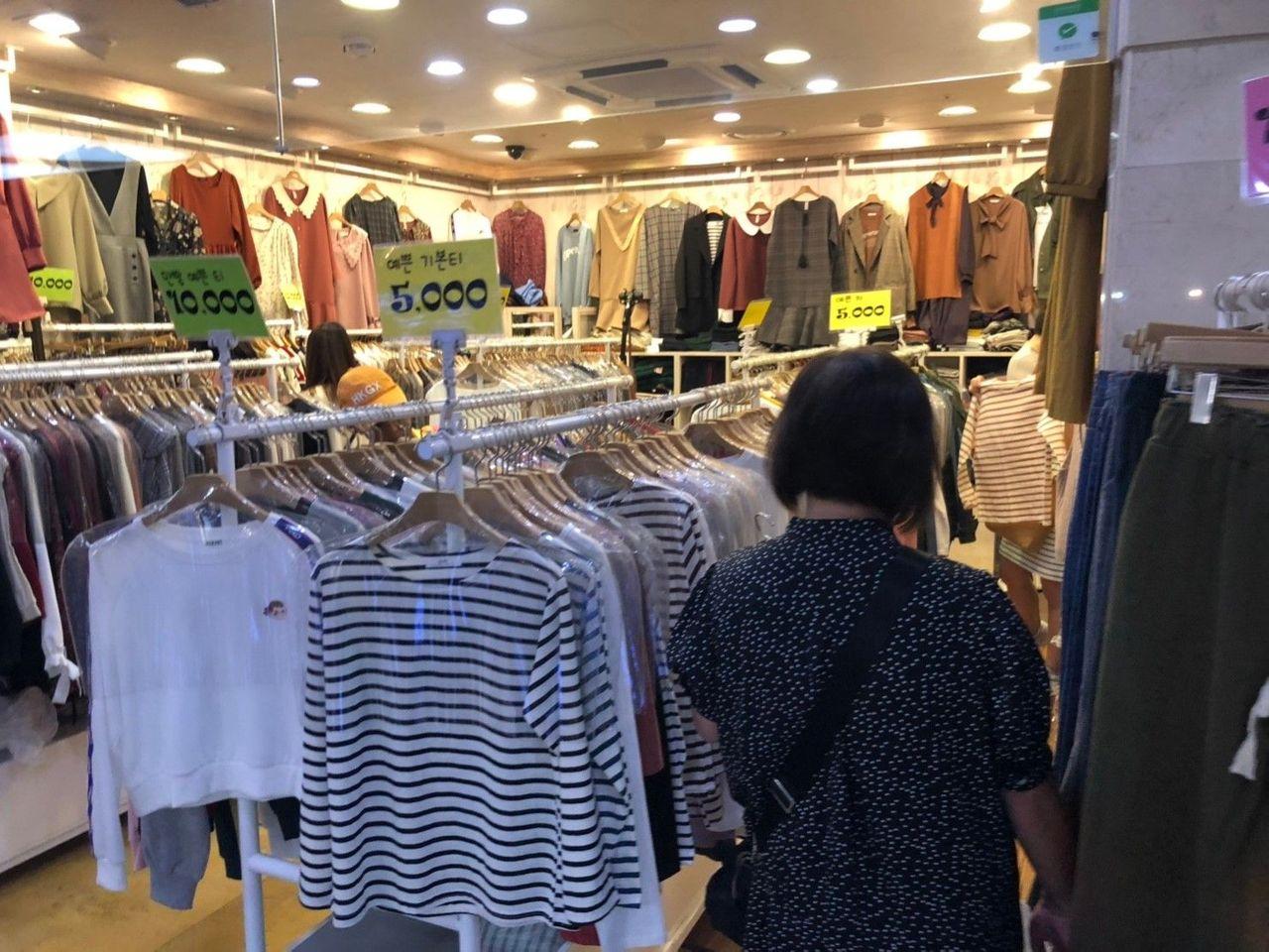 Since I was accompanied by a bunch of female friends, we mainly shopped for cheap women's clothing. Many tops and trousers were put out for sales. Some of us bought a basic top for only 10,000 Won.