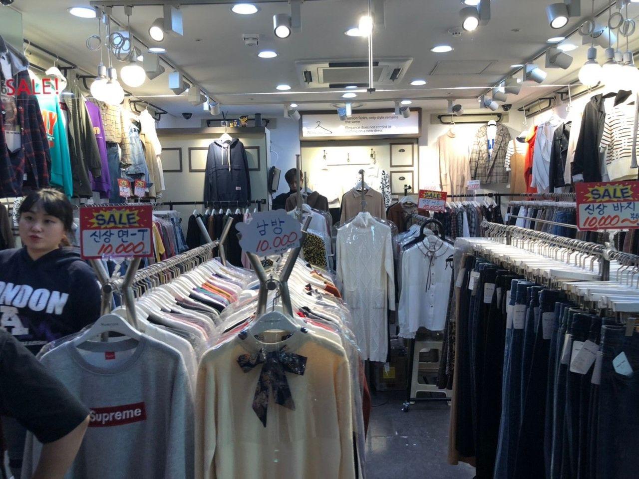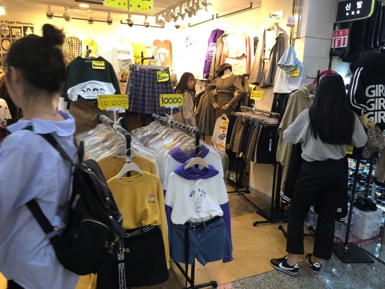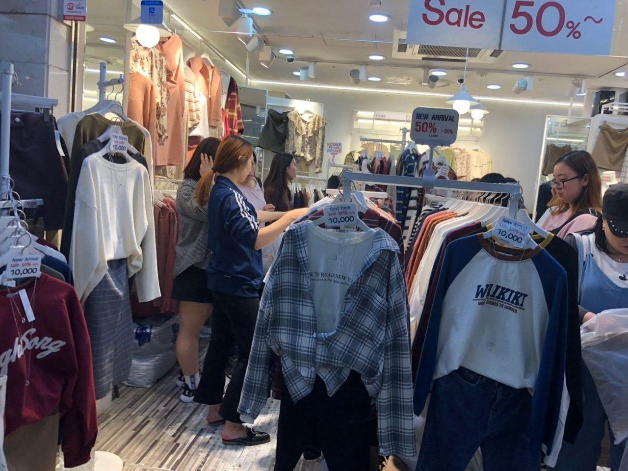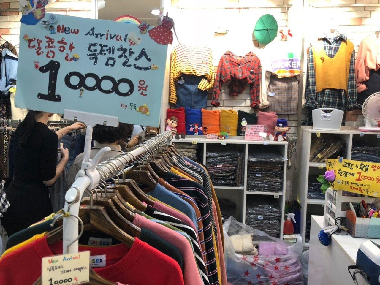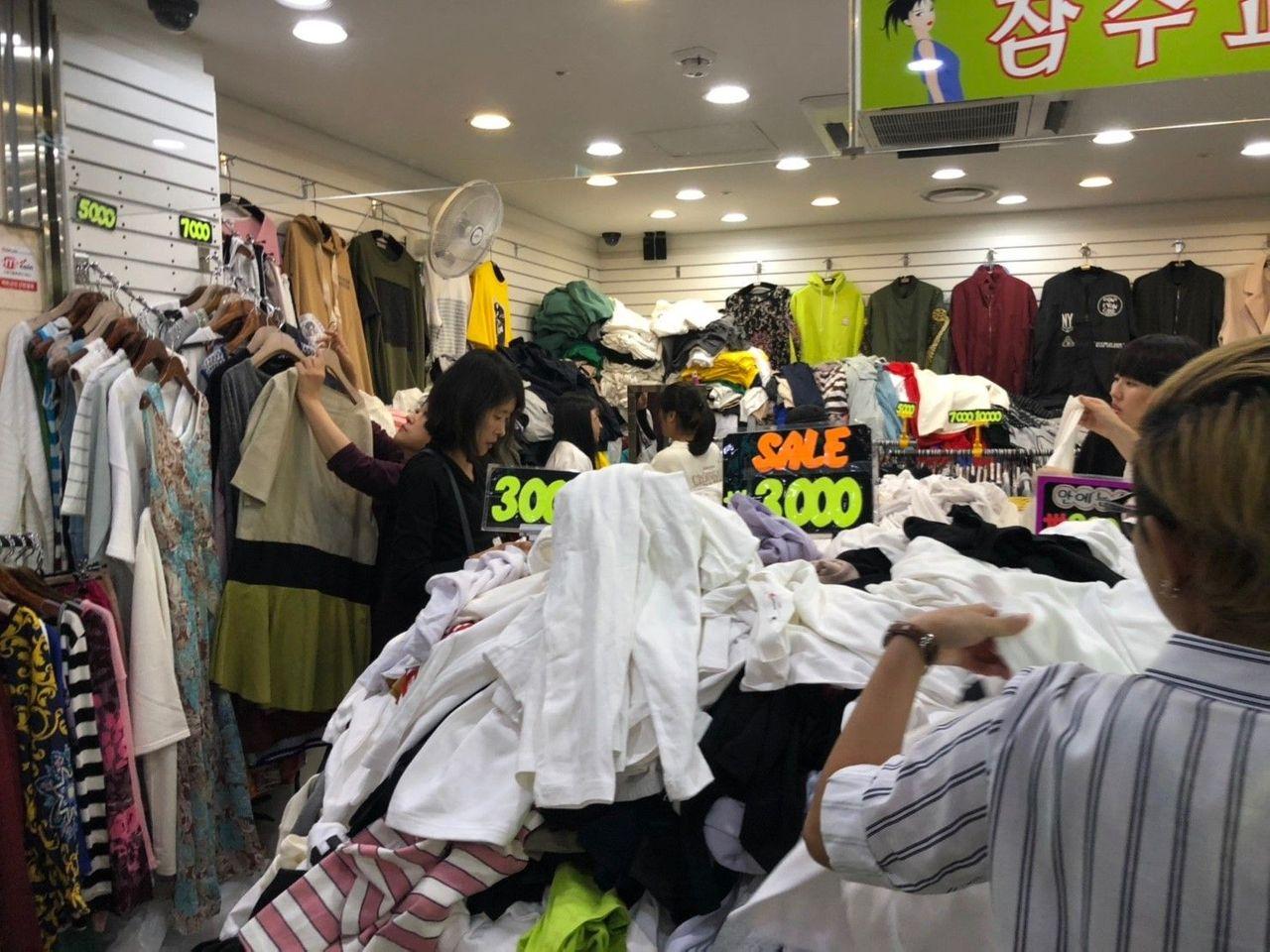 Since I was accompanied by a bunch of female friends, we mainly shopped for cheap women's clothing. Many tops and trousers were put out for sales. Some of us bought a basic top for only 10,000 Won.