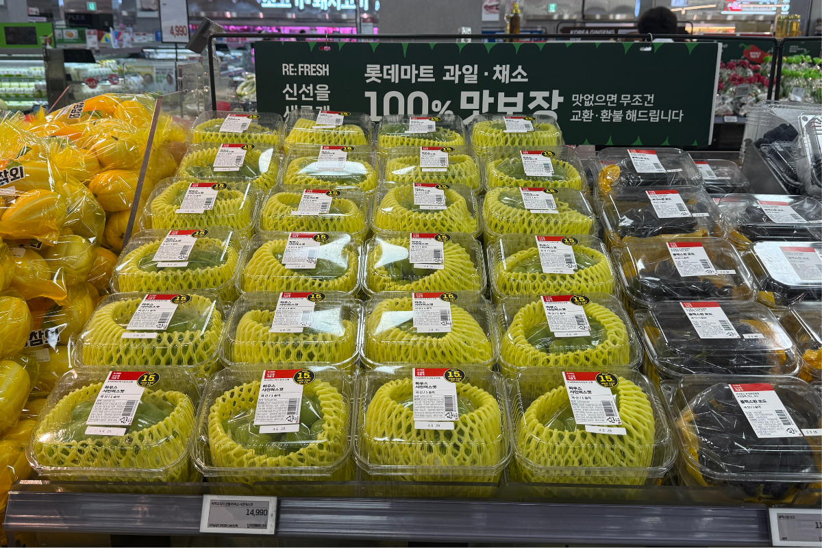 Korea is famous for its premium fruit, and one of the must-tries is the Shine Muscat grapes. Sweet, crisp, and almost candy-like, they’re perfect for a little taste test back at your accommodation.