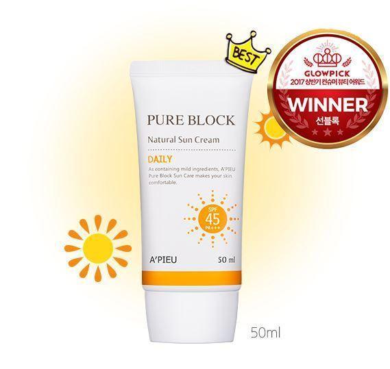 10. A'PIEU PURE BLOCK NATURAL DAILY SPF45/PA+++