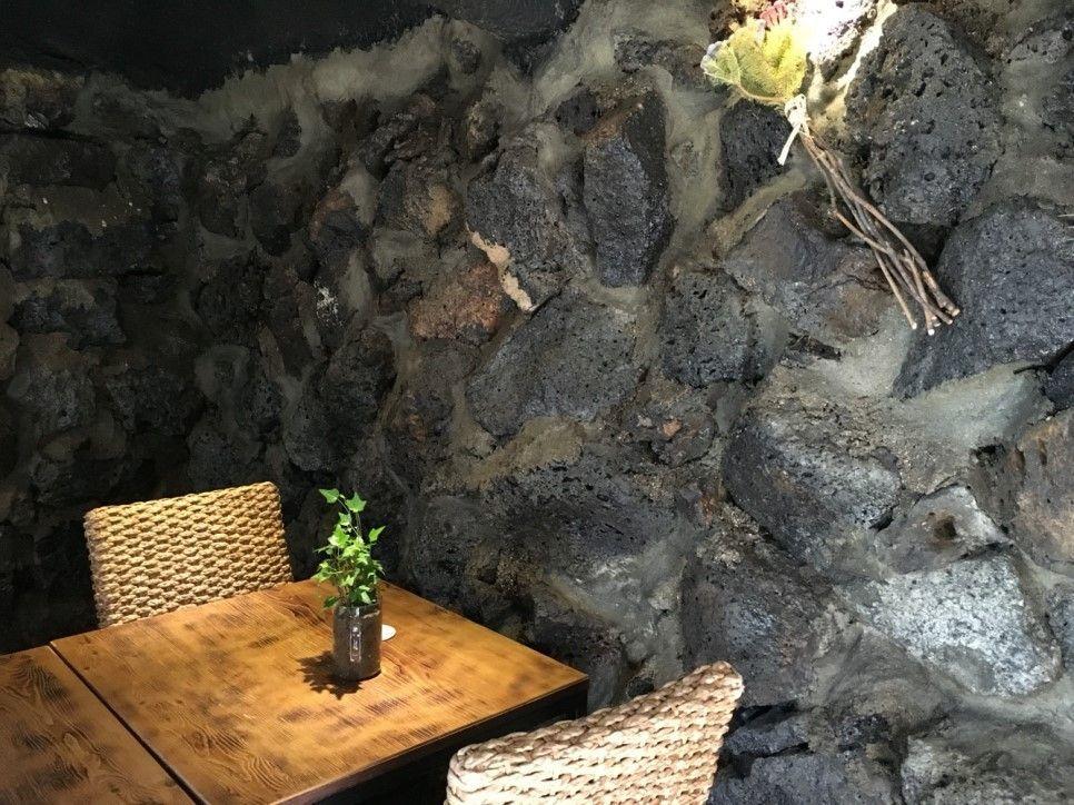 Anthracite is a cafe that has stone walls preserved from Jeju's traditional architecture. It embodies the unique Jeju vibes.