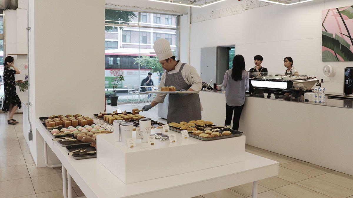 On one side of the cafe, there was a place to bake bread with a Patisserie constantly making fresh bread.