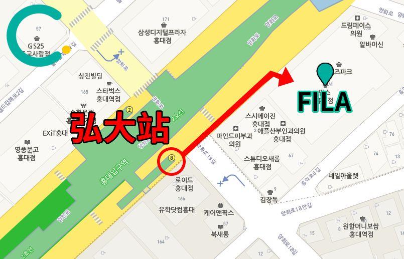 • Hongdae FILA Address: YZ Park 1st Floor 176, Yanghwa-ro, Mapo-gu, Seoul