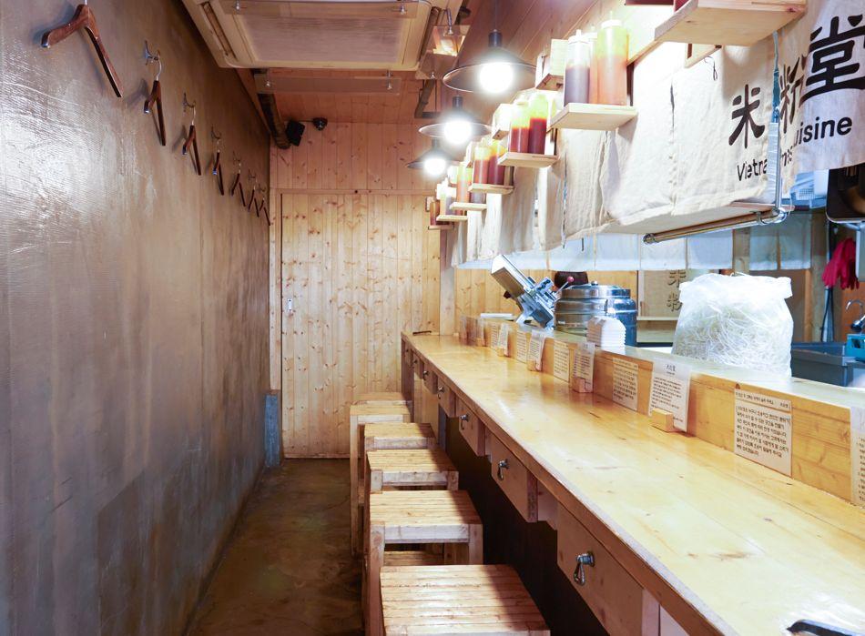 You write down your desired meal on the wait list and get the meal voucher after the checkout. The waiter or waitress will collect your meal coupon and guide you to your seat. This restaurant has a similar decor to a Japanese Izakaya. The store has a cozy, comfortable ambiance. With a bowl of delicious Vietnamese rice noodles, provide warmth to your soul at Mibungdang.