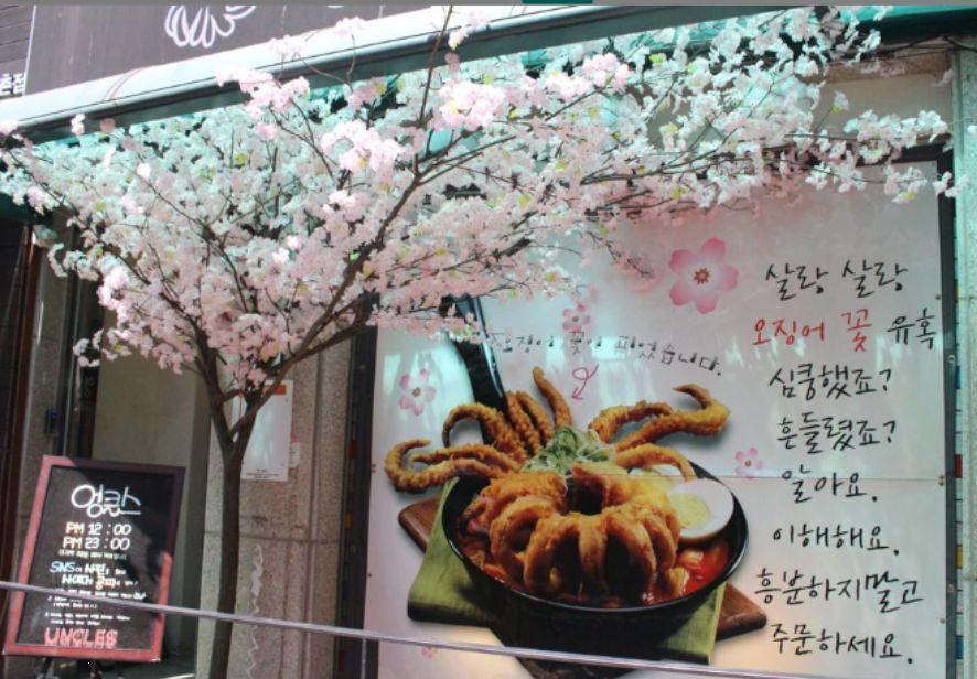 Uncle's Shinchon recently became a social media phenomenon. When you order the store's famous fried squid Tteokbokki, you will be surprised by the flowery shape of big squid in the bowl.
