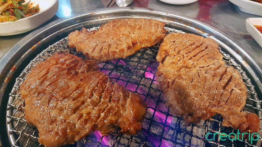 The restaurant has three menus. I suggest you order the second package (11,900 Won), or the first first package. The difference between these two menus are the second level includes pork neck slices. The first package only contains three-tiered pork belly barbeque, which could taste too greasy.