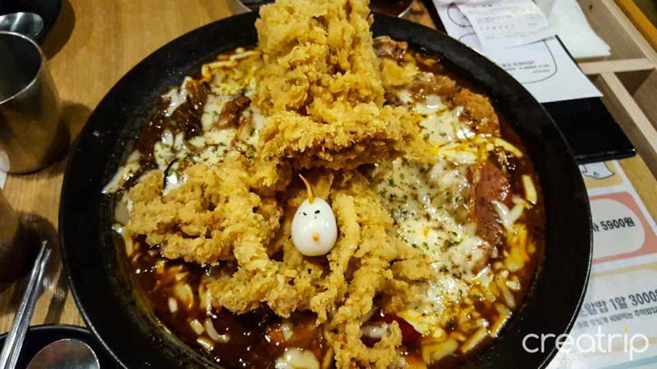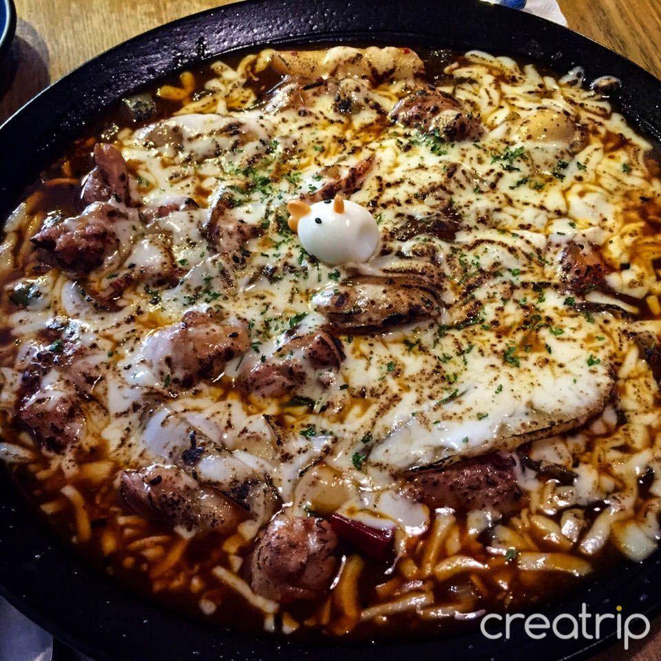 Shinchon Dakgalbi Factory offers Dakgalbi, a dish made with spicy stir-fried chicken with cabbages. You can visit this restaurant with a group of your friends and share the dish together. The dish contains quality ingredients. In addition to the spicy chicken, you can add additional ingredients like meat, vegetables, and cheese.