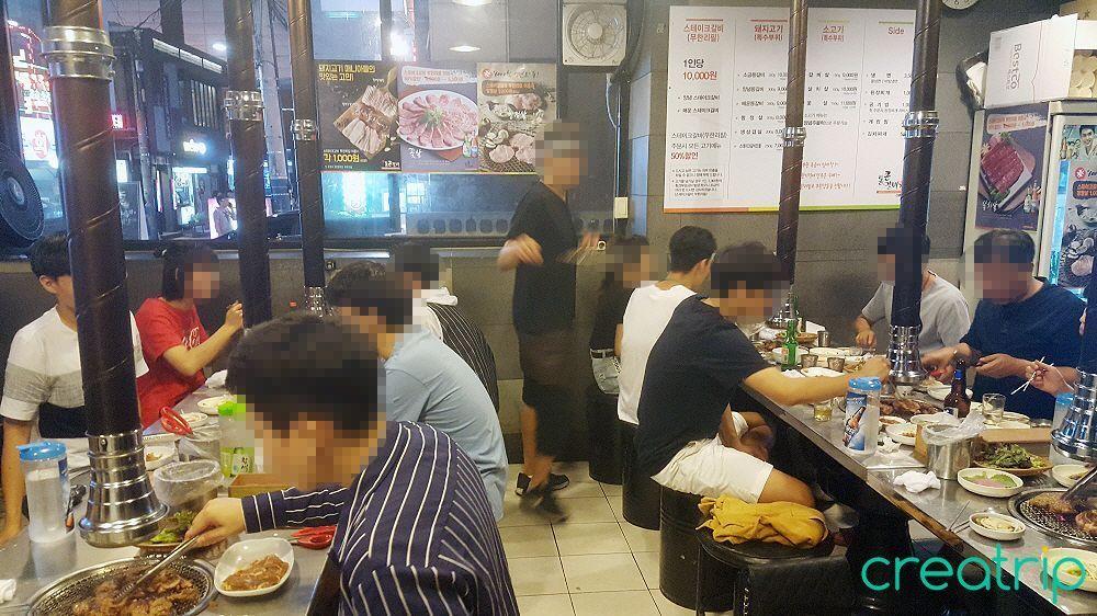 This restaurant is another galbi restaurant. How did this Creatrip editor add two Galbi restaurants on the list? You might be wondering. Huge ribs are a very popular rotisserie in Korea. As a result, there are many great Galbi BBQ restaurants in Seoul. This restaurant, Shinchon Tongkeun Galbi, is another famous restaurant that is being loved by college students.