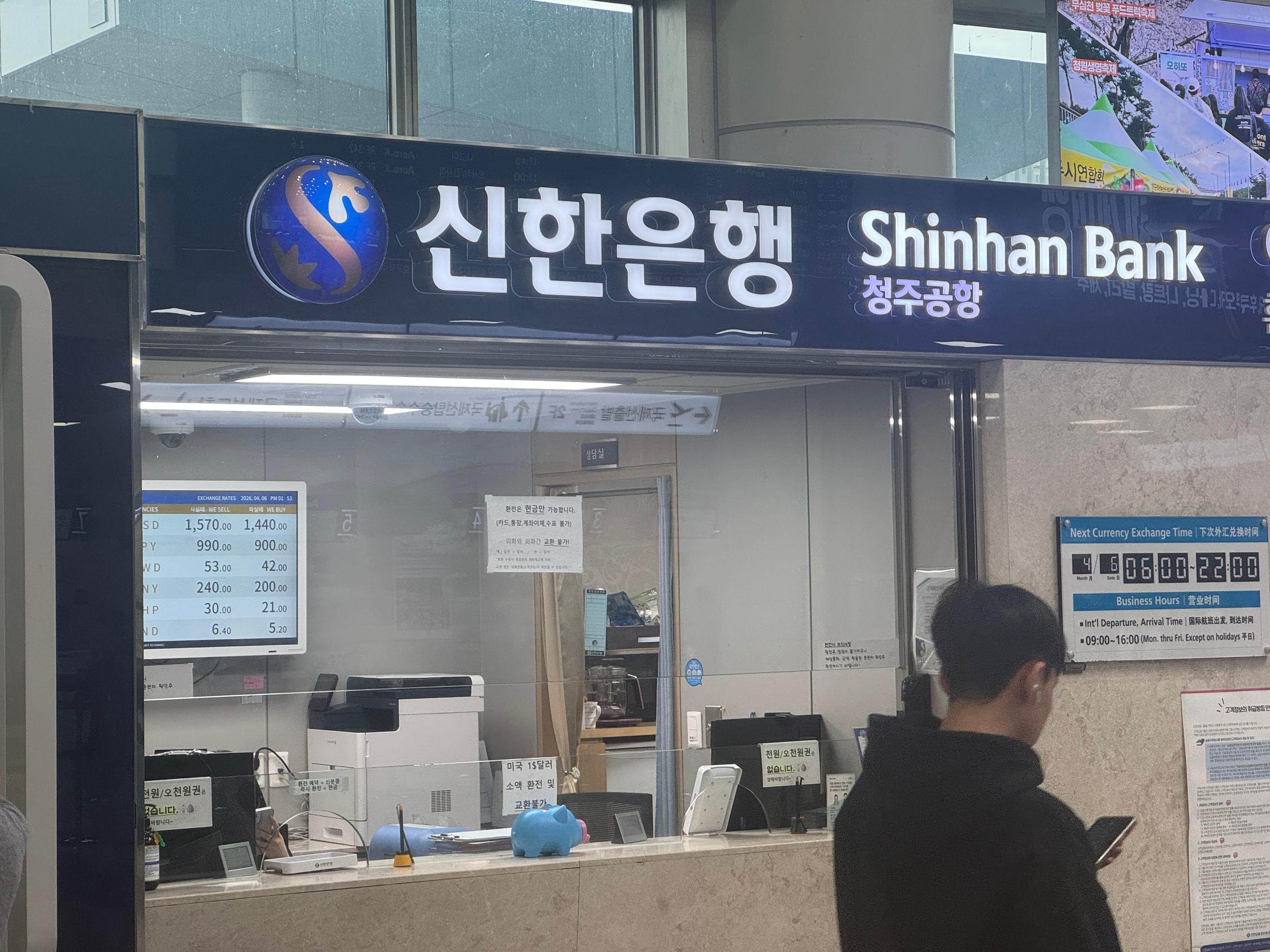 Currency Exchange at Cheongju Airport only offers service from Shinhan Bank. If you are traveling through Cheongju, it is better to exchange money from your home country or arriving in Seoul than in Cheongju Airport.