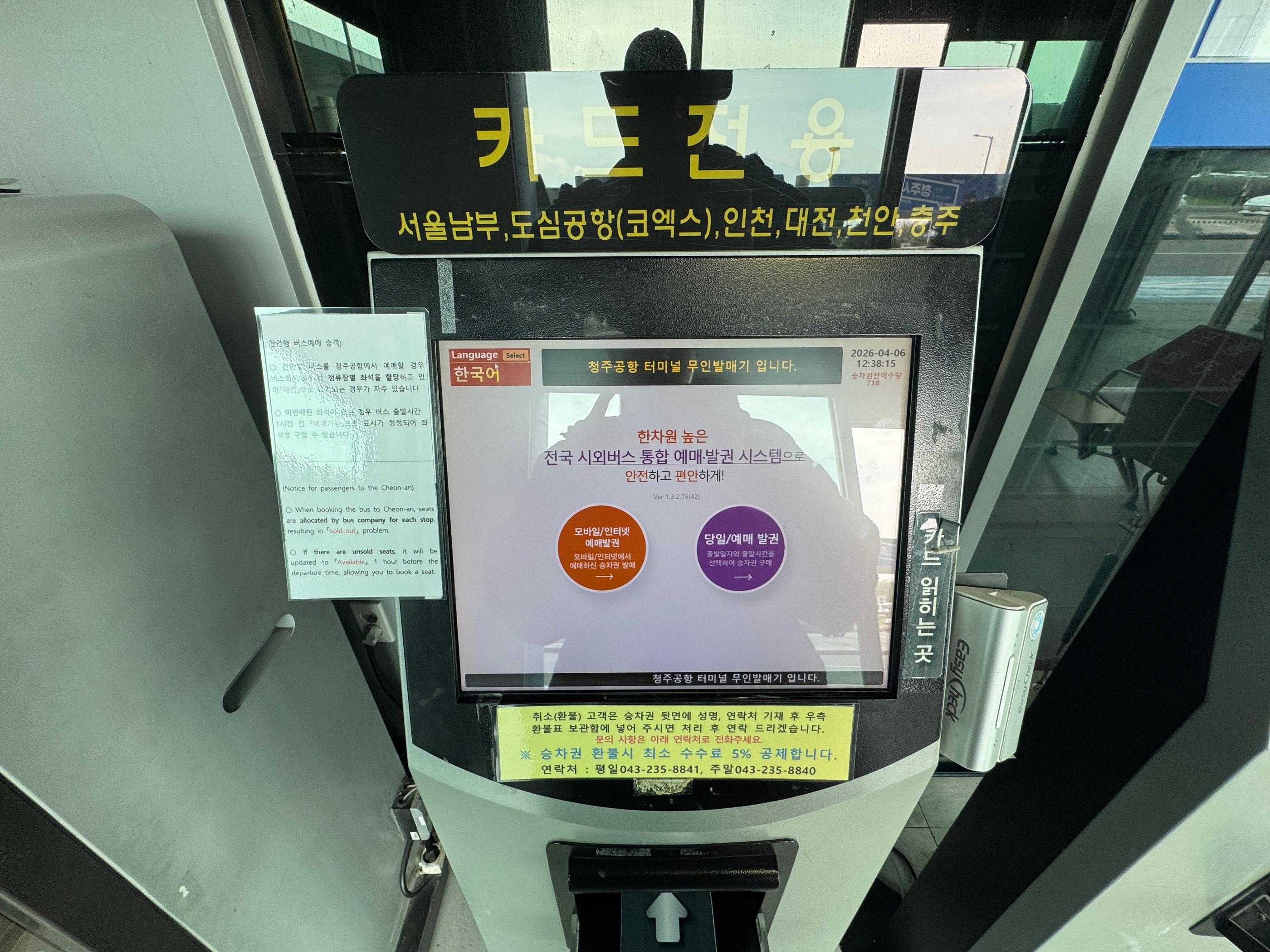 If you are taking the bus from Gate 1, remember to buy a ticket first, since you cannot use T-money card for express buses (you can use T-money for other Cheongju buses). I have sorted out the latest information on Cheongju transportation. I recommend that you make a reservation for the ticket, since they almost always run out 1 hour before the departure.
