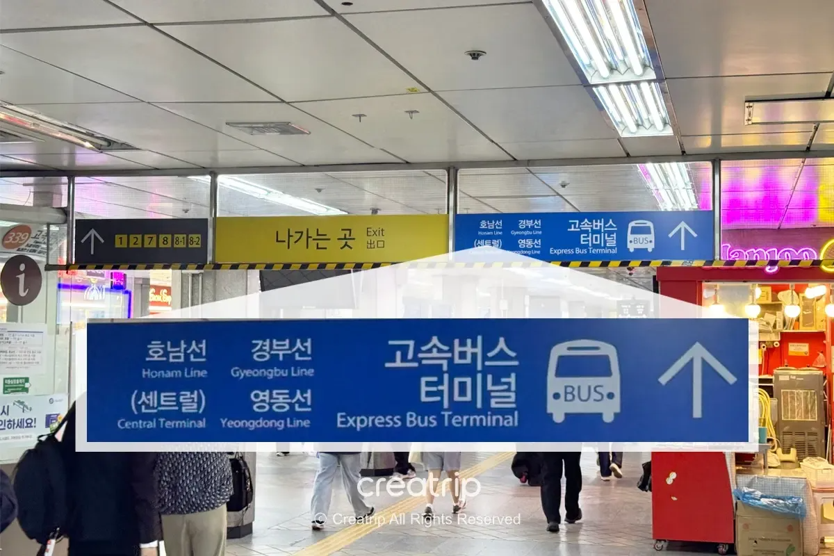 When you are taking the bus from Express Bus Terminal Station, you need to get to Exit 2 or 7 and get to Honam line (호남선) or the Central Terminal.