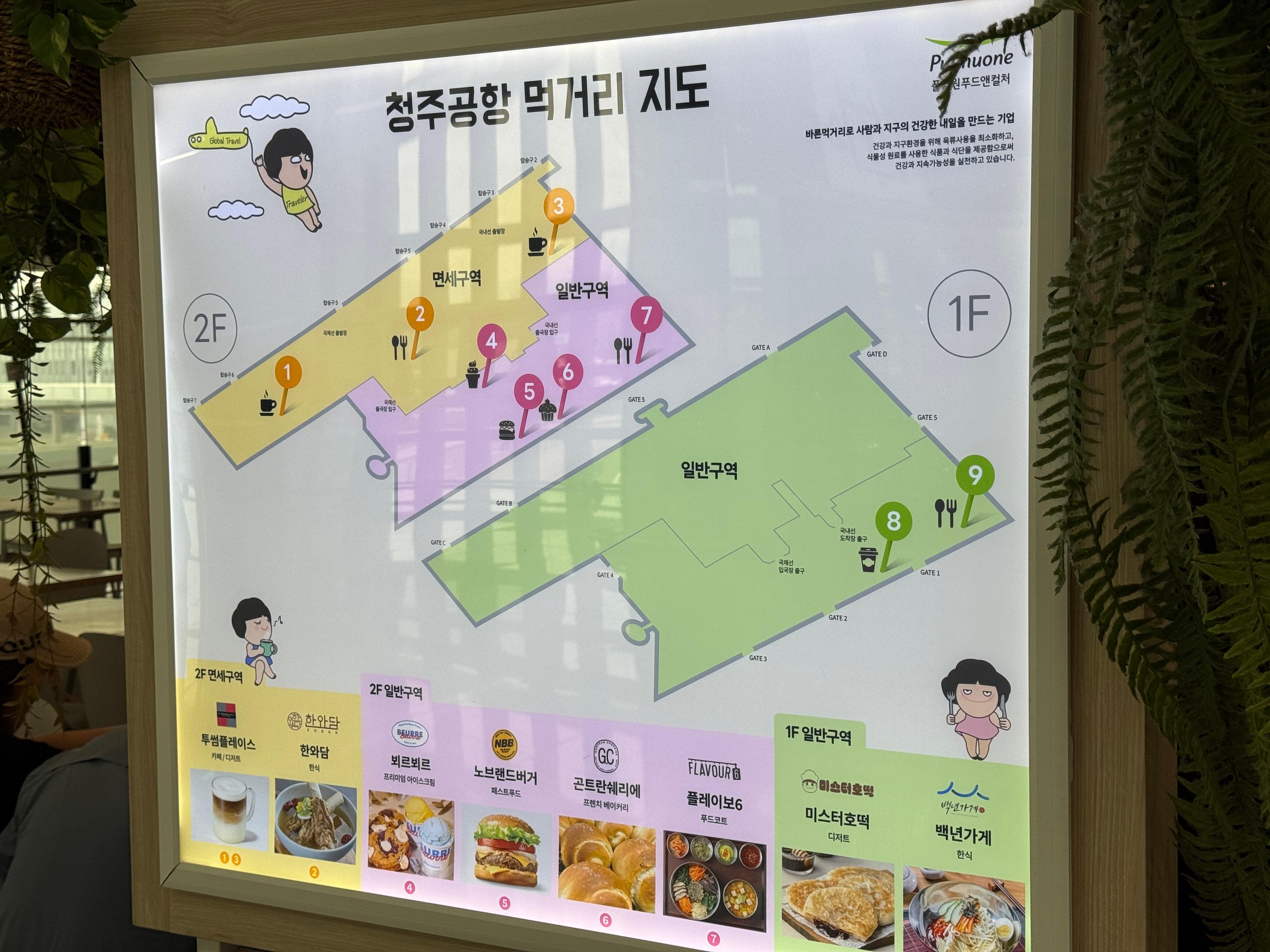 Based on the airport food map available at Cheongju Airport during my visit, the dining options are more varied than many travelers might expect from a smaller regional airport.