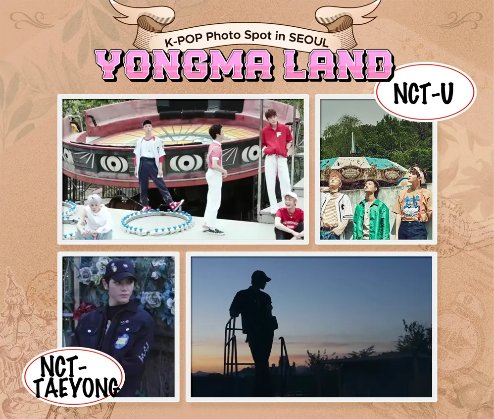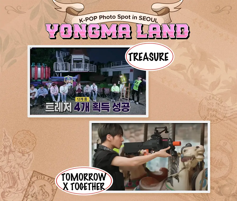 If you are interested in K-Pop, you must have seen many music videos and photos of K-Pop idols. In Seoul, there's a place where you can visit the actual place these photos and music videos were taken! Yongma Land is already quite famous for K-Pop fans! Being located in Seoul makes it convenient to drop by during your Seoul trip. From BTS to BLACKPINK, TREASURE, and TOMORROW X TOGETHER, Yongma Land has become a popular spot for filming among various K-Pop groups! Let me show you a sneak peek of the photos taken at Yongma Land!