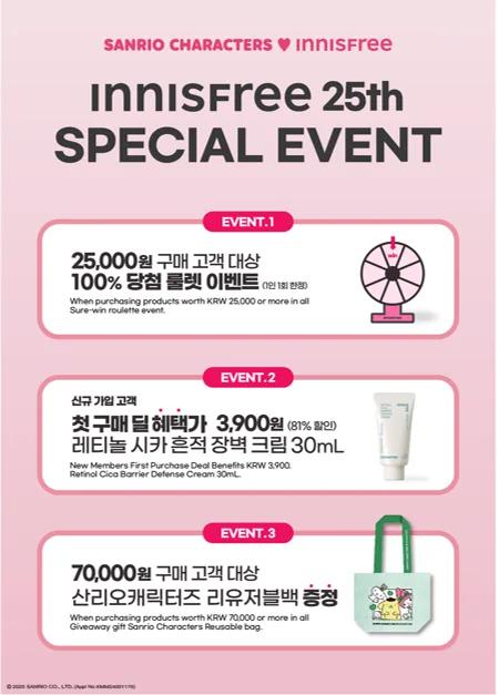 Natural brand innisfree will open a collaboration pop-up store with Sanrio Friends to celebrate its 25th anniversary this year, from January 1 to February 28 at 'Innisfree The Isle' in Seongsu.