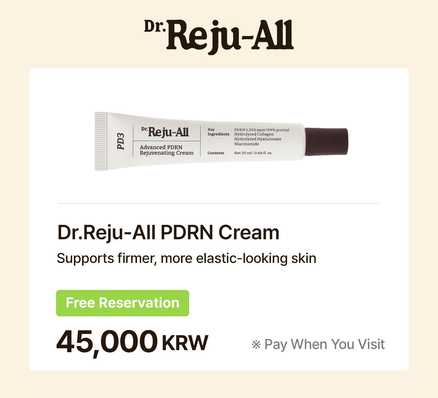 Reserve Korea's most popular Dr.Reju-All PDRN Cream without prepayment and purchase on-site at the pharmacy. Consult first, then decide—completely hassle-free. Creatrip partner pharmacies also carry popular K-beauty items including PDRN sheet masks, lip serums, Rejuran, Melatoning cream, and more.