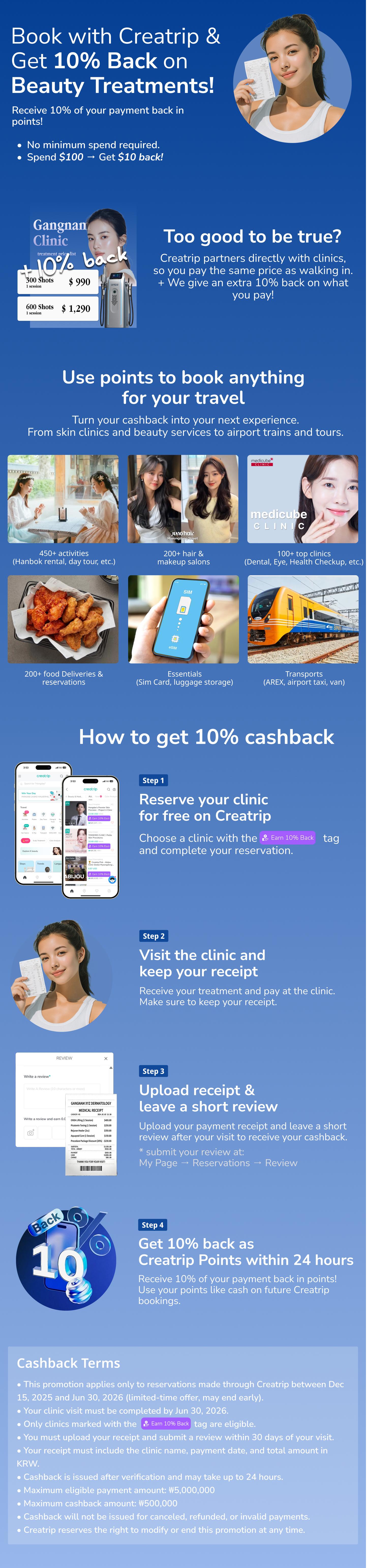 Beauty Cashback Promotion for Creatrip Skin Clinic Reservations2025.12.16 ~ 2026.06.30
